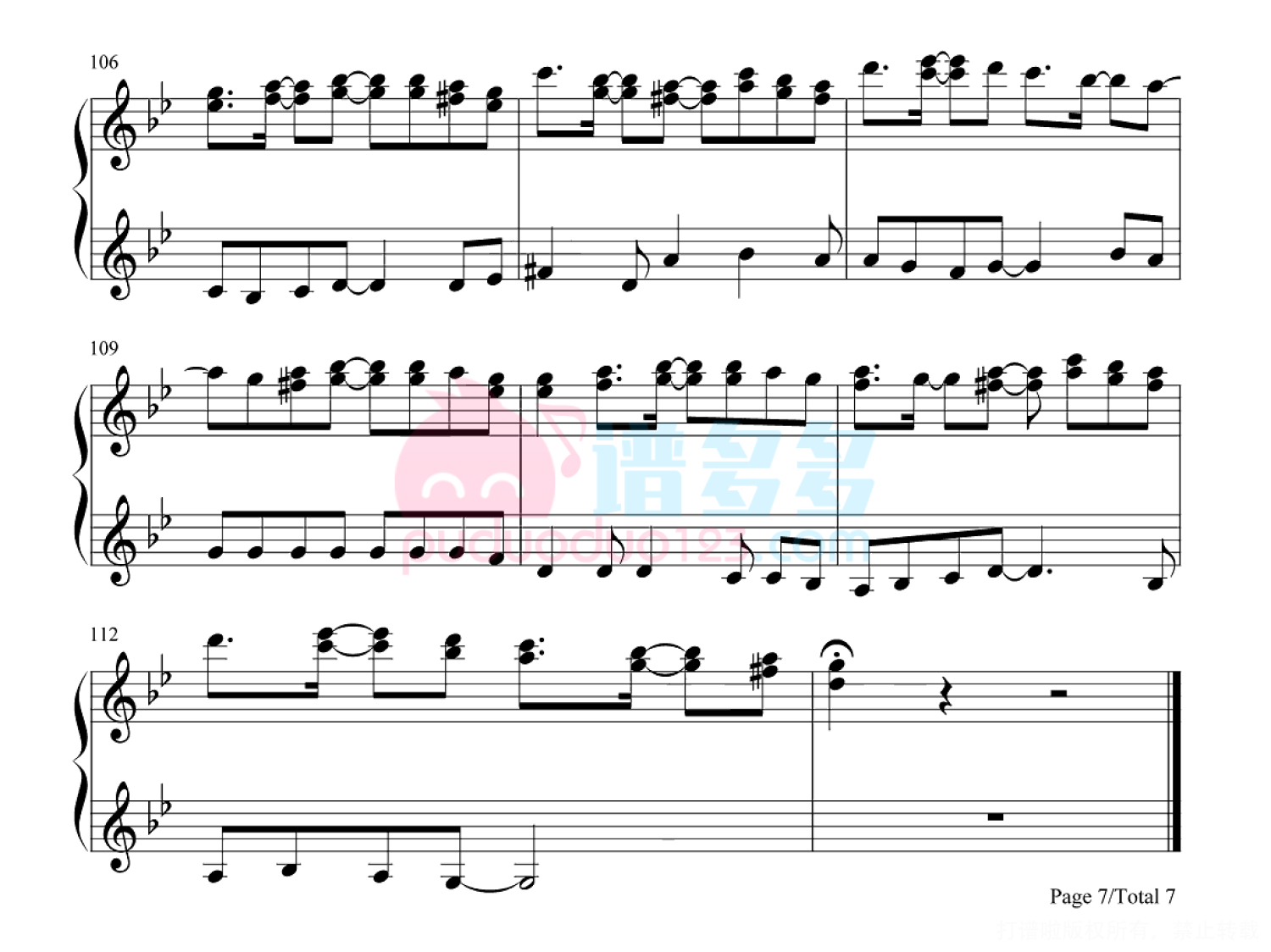 凡是琴谱网站内的版权保护水印,打印时,都会无水印。
