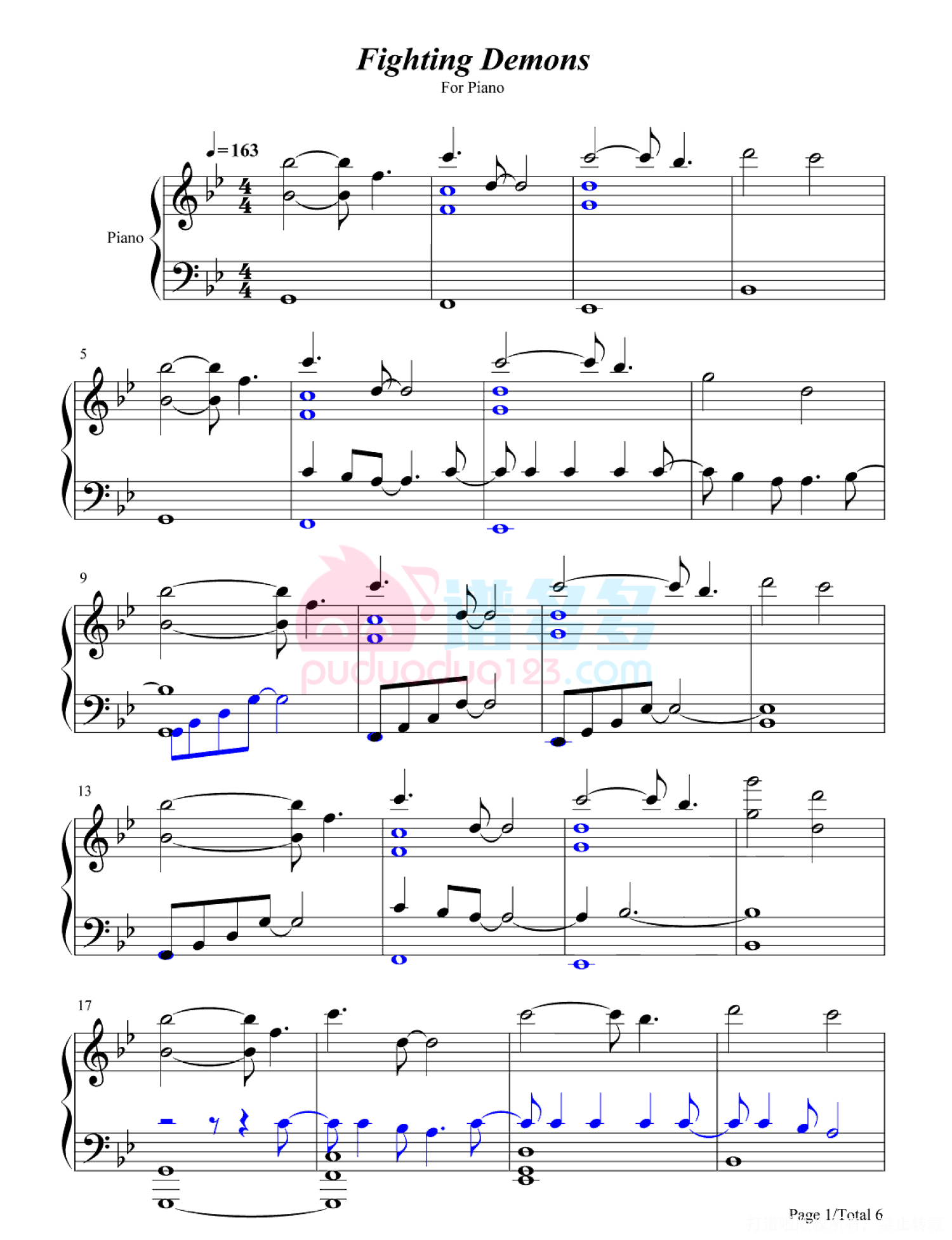 当前位置:琴谱网>钢琴谱>Fighting Demons