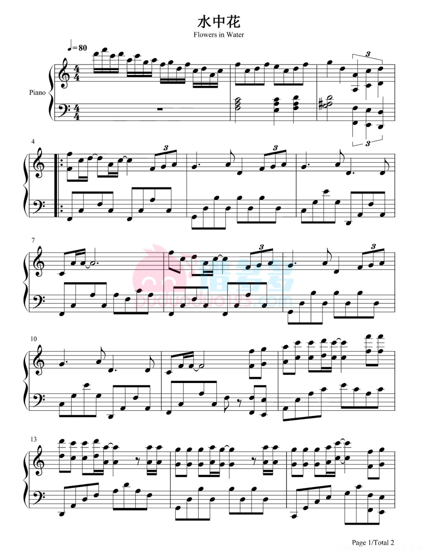 当前位置:琴谱网>钢琴谱>水中花