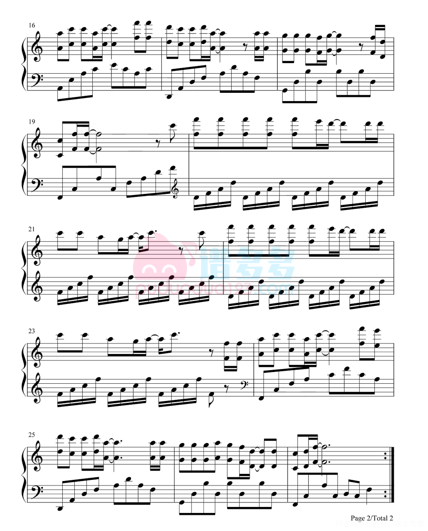 凡是琴谱网站内的版权保护水印,打印时,都会无水印。