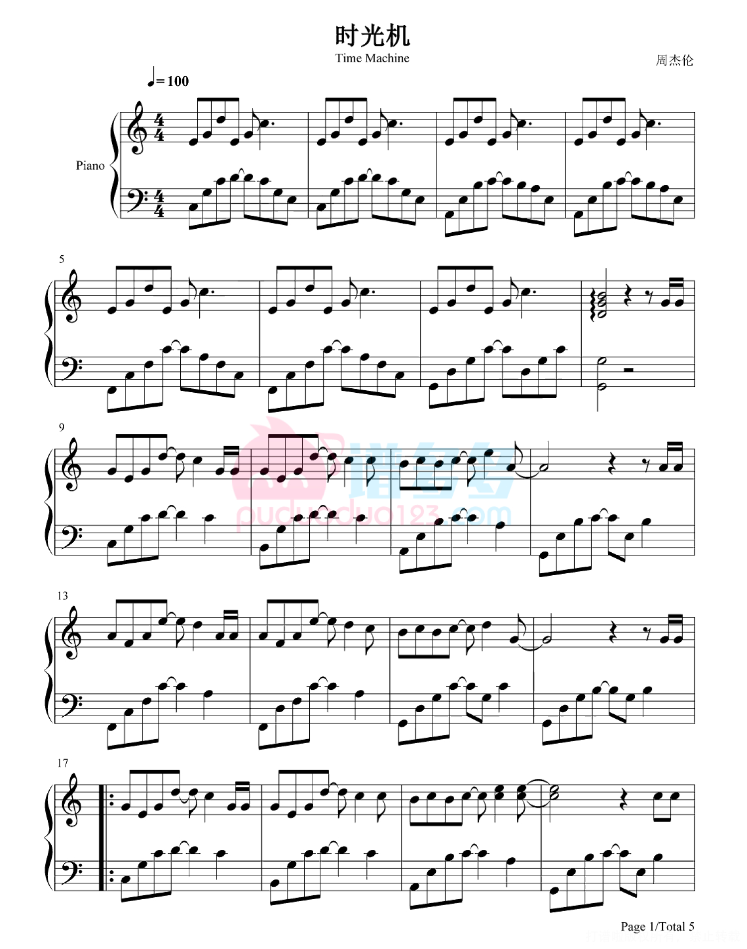 时光机钢琴谱 - 周杰伦
