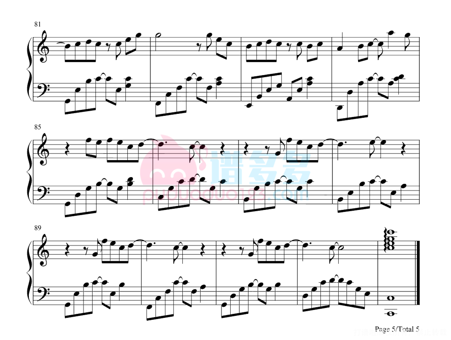 凡是琴谱网站内的版权保护水印,打印时,都会无水印。