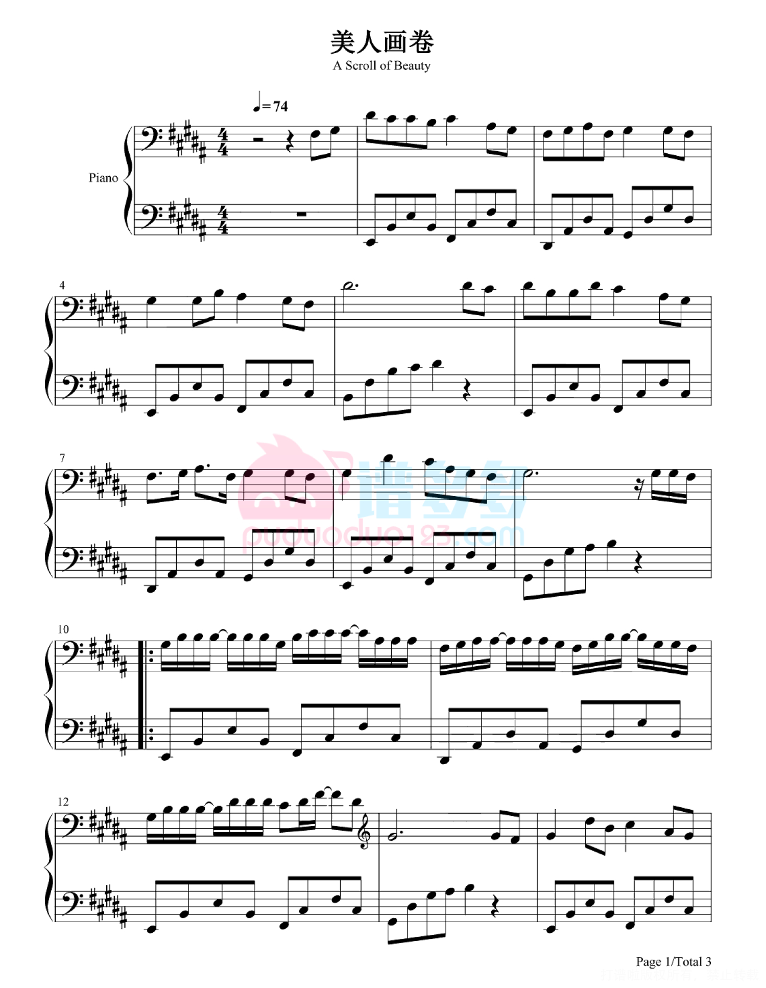 美人画卷钢琴谱 - 问人听書