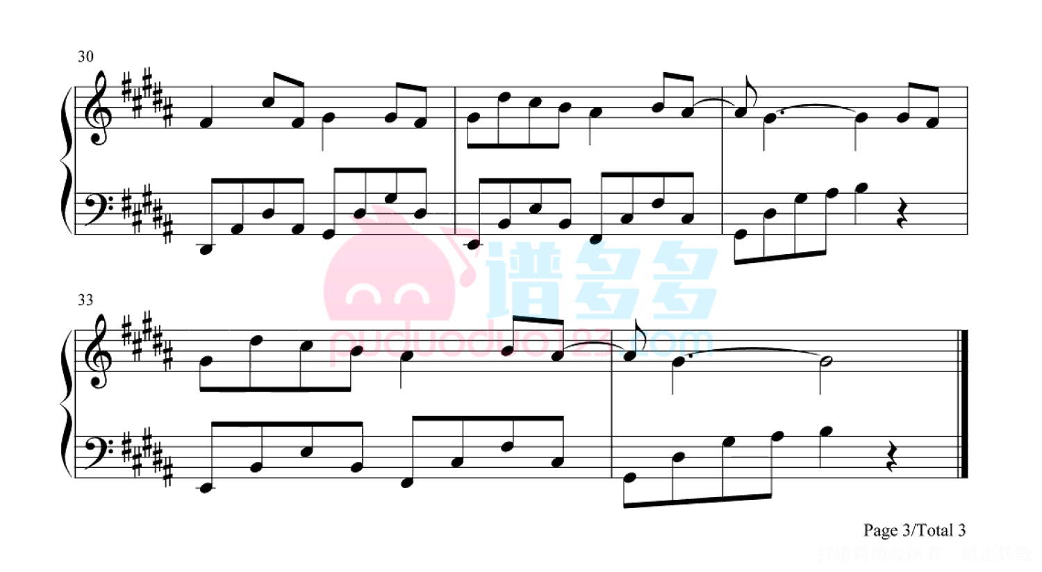 凡是琴谱网站内的版权保护水印,打印时,都会无水印。