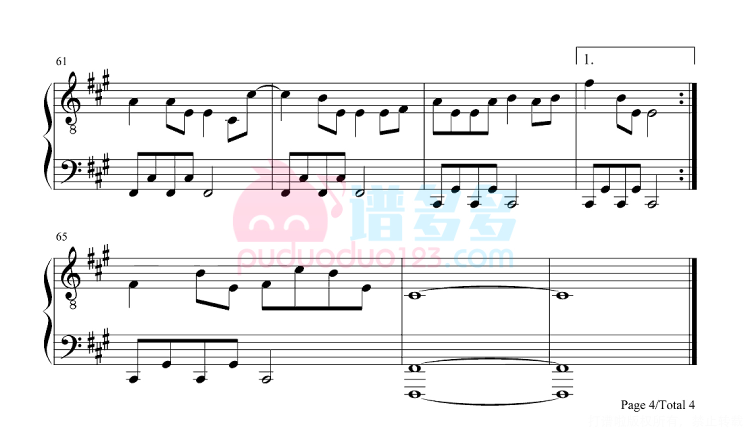 凡是琴谱网站内的版权保护水印,打印时,都会无水印。