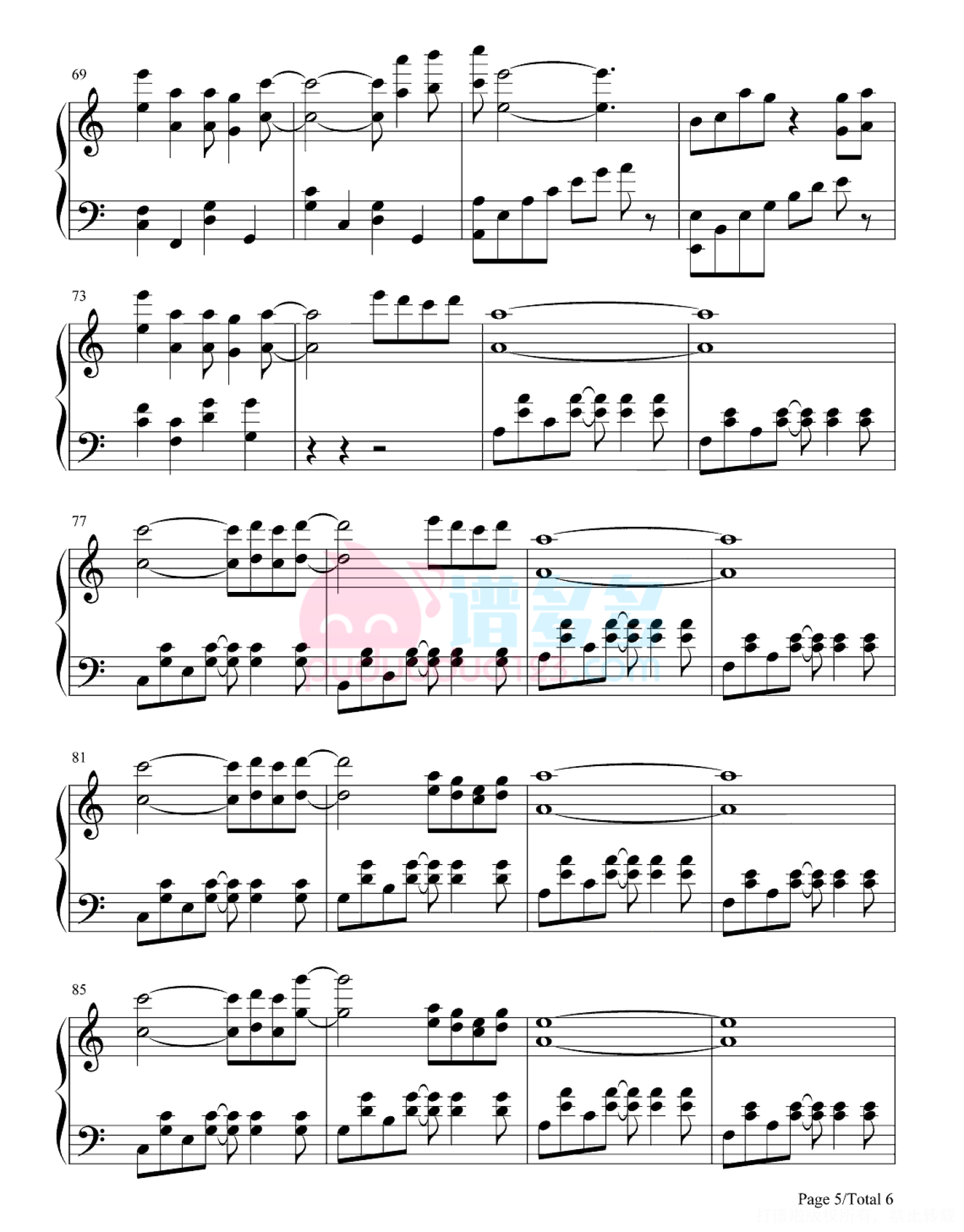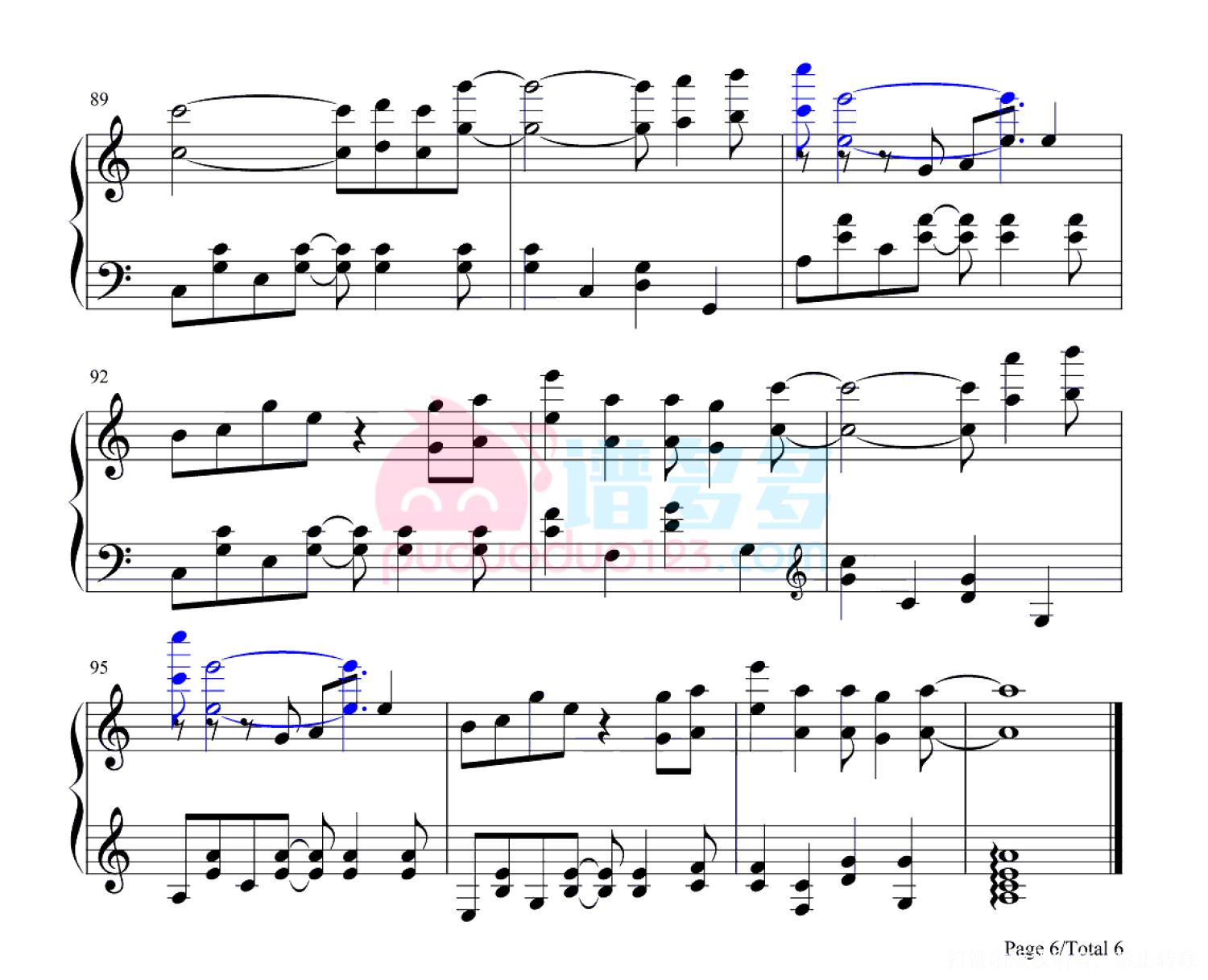 凡是琴谱网站内的版权保护水印,打印时,都会无水印。