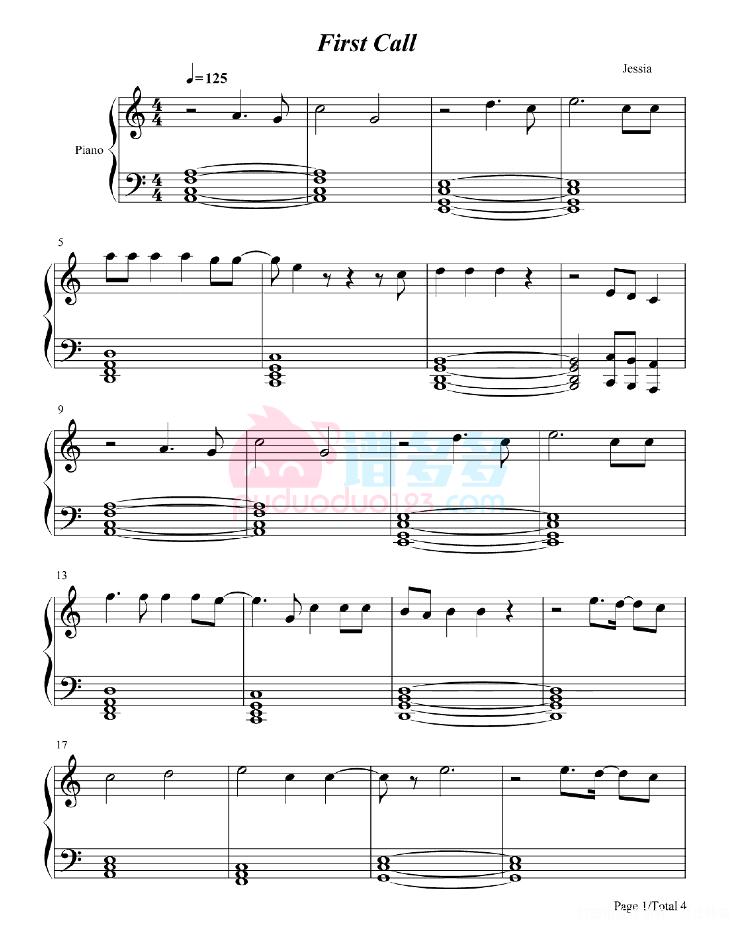 曲谱介绍: 本曲谱是高清版《First Call》钢琴谱,由谱友提供并在打谱啦和大家分享。《First Call》是Jessia演唱的歌曲,收录在其首张EP专辑《How Are You?》中。JESSIA,来自加拿大温哥华的流行女歌手,也是一位通过TikTok走红的网红女歌手。