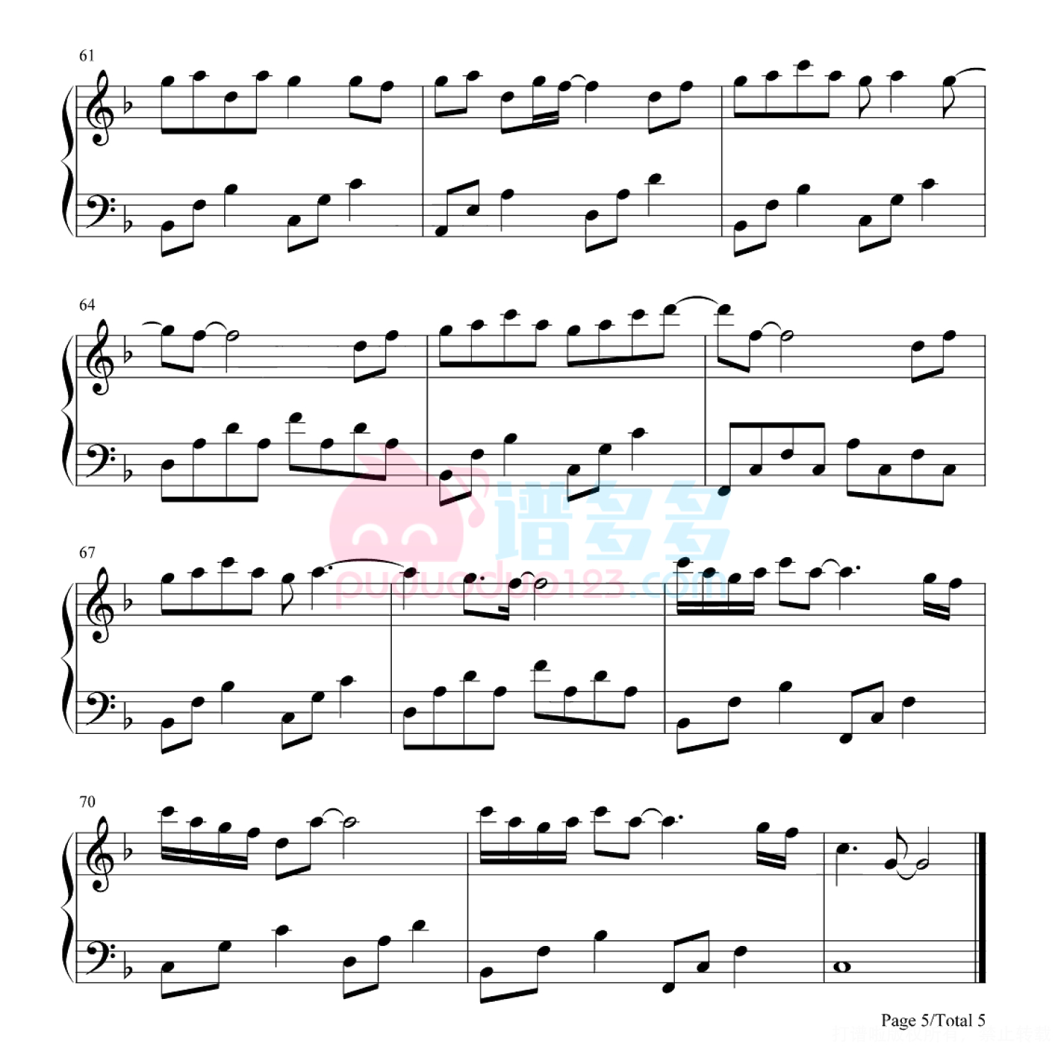 凡是琴谱网站内的版权保护水印,打印时,都会无水印。