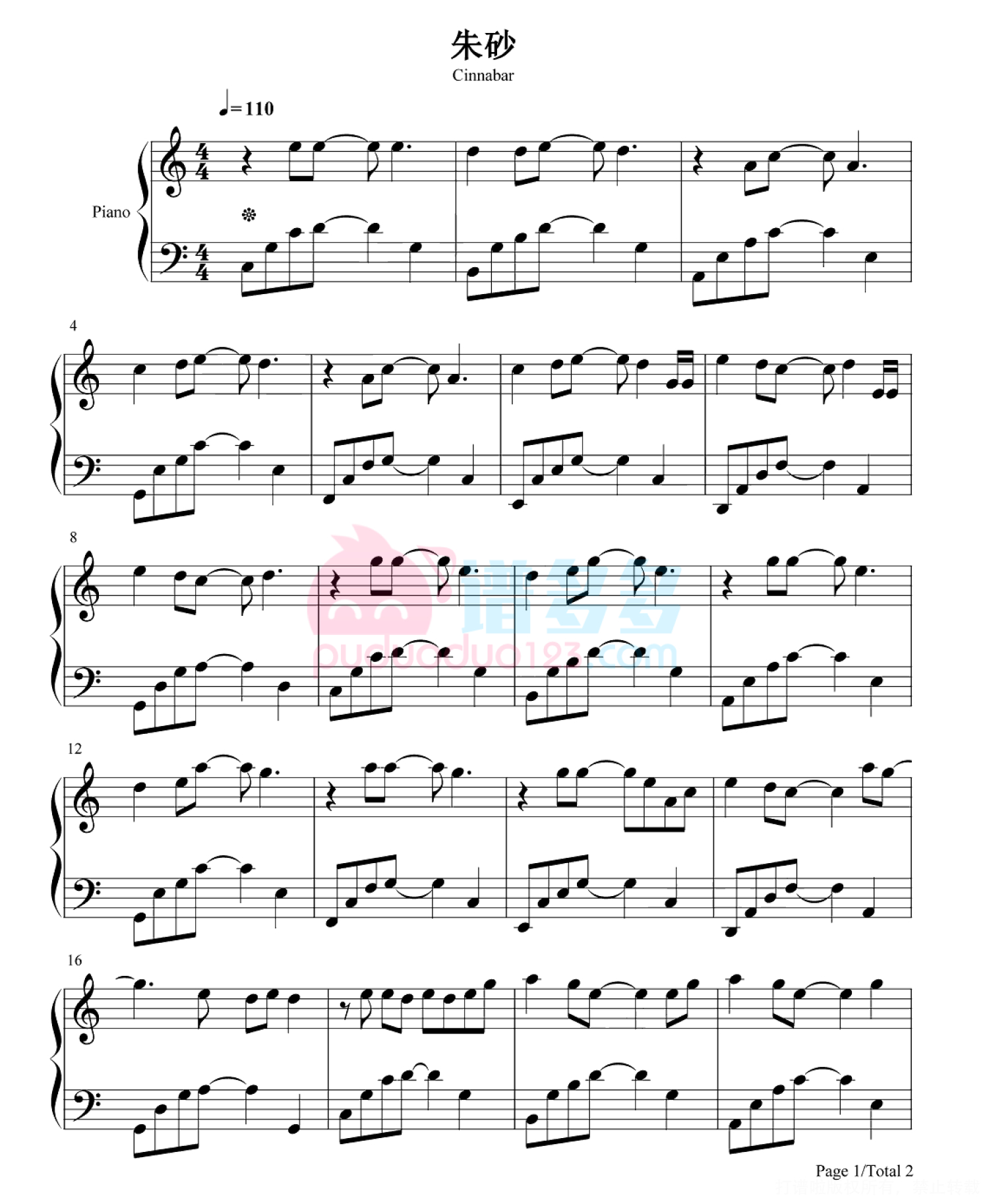 当前位置:琴谱网>钢琴谱>朱砂