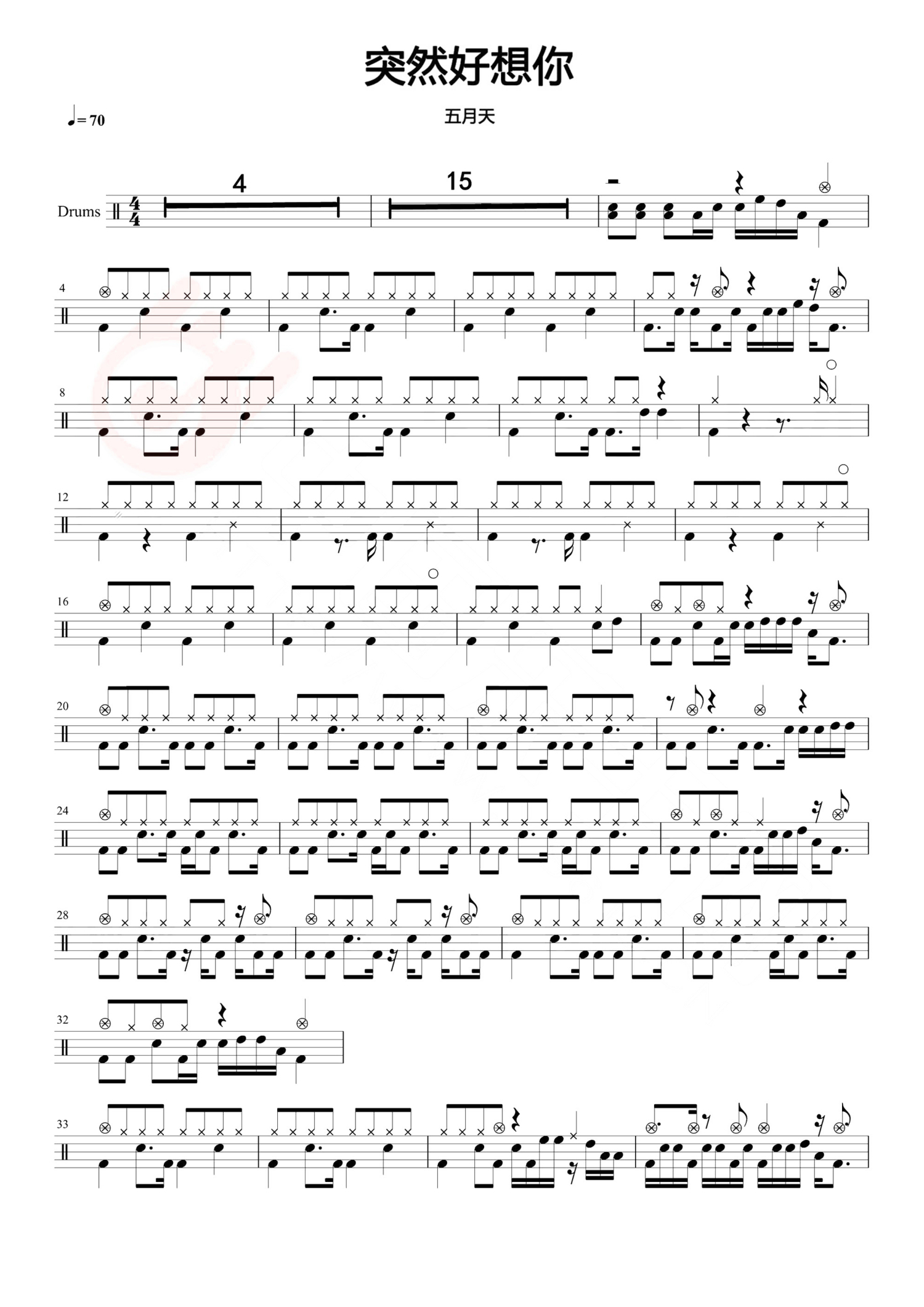 突然好想你鼓谱 - 五月天 - 架子鼓谱