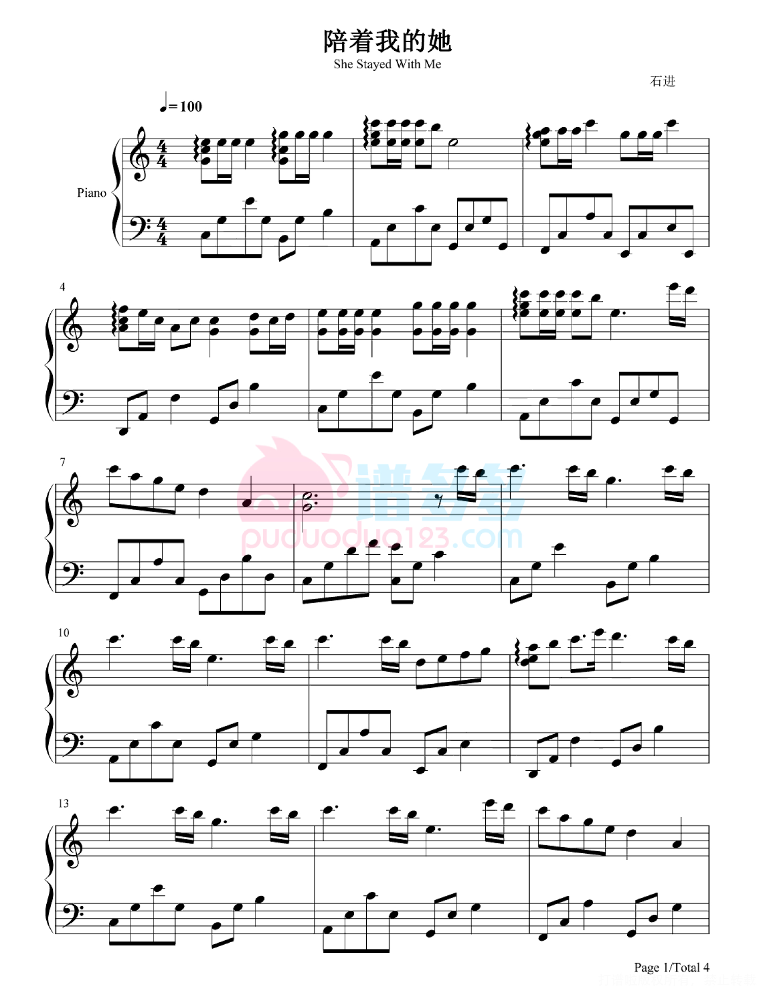 陪着我的她钢琴谱 - 石进