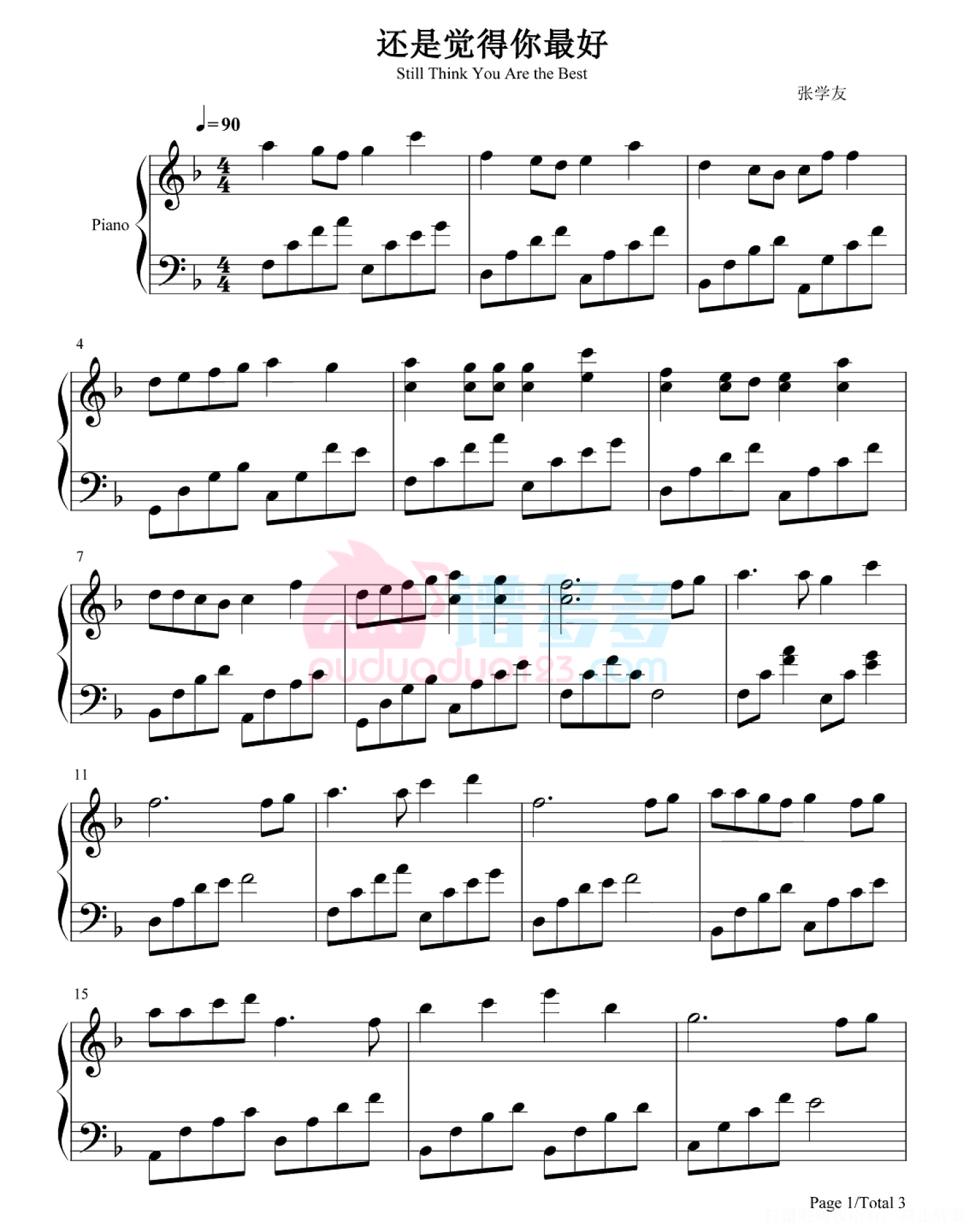 还是觉得你最好钢琴谱 - 张学友