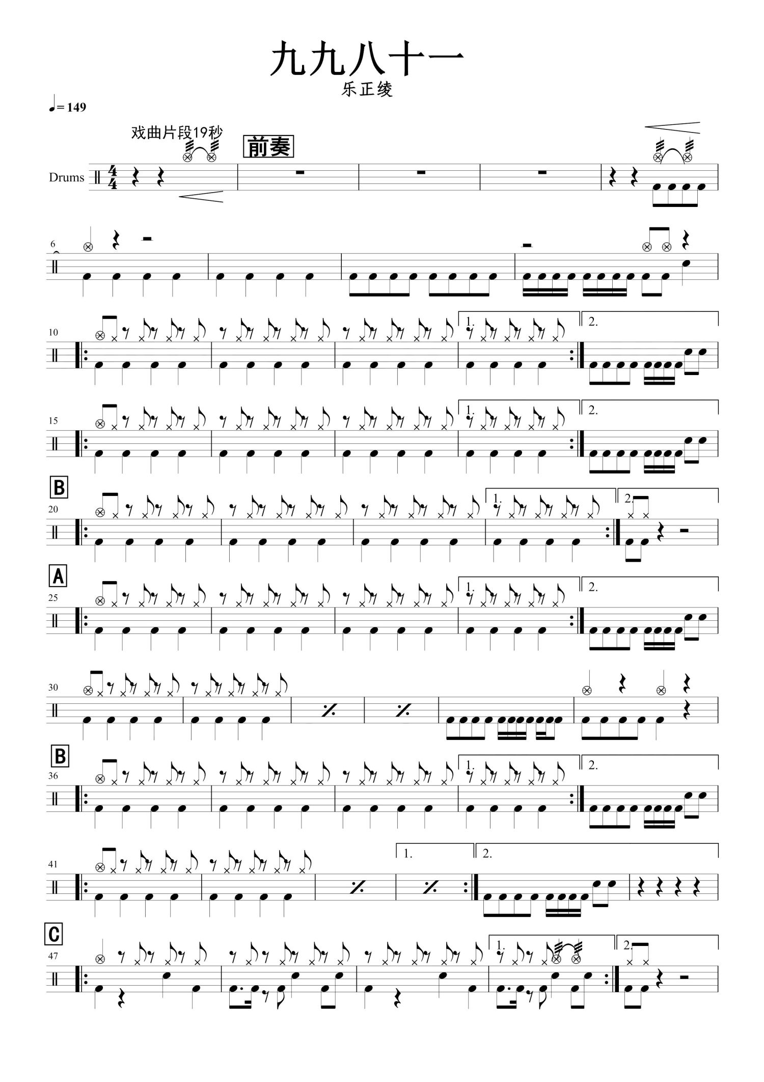 当前位置:琴谱网>架子鼓谱>九九八十一