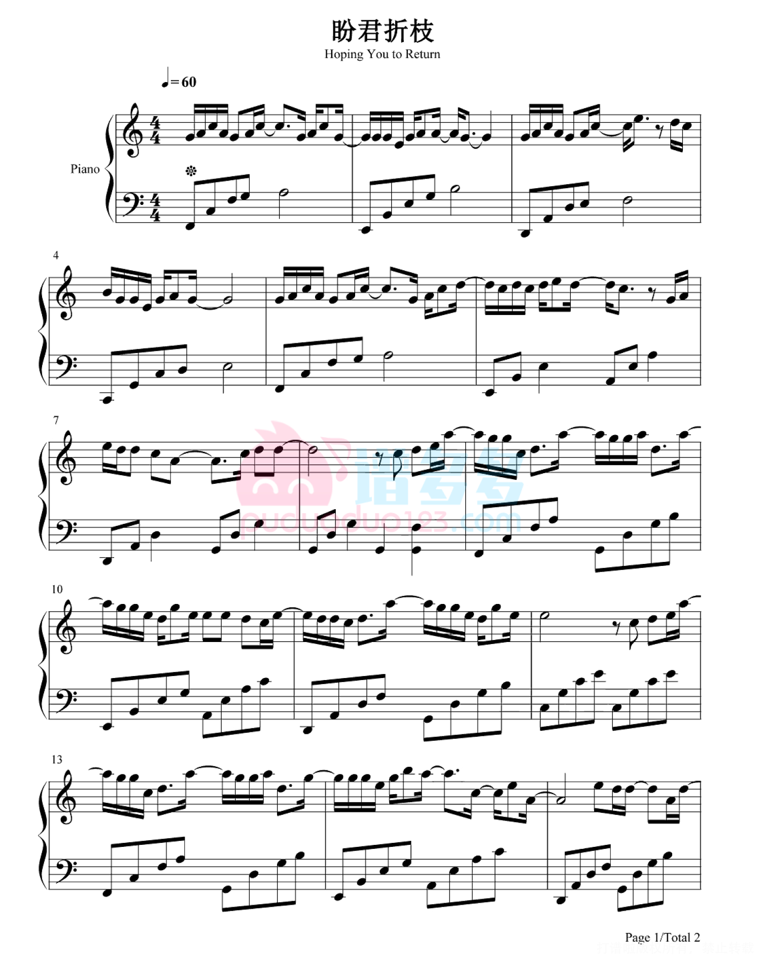 当前位置:琴谱网>钢琴谱>盼君折枝