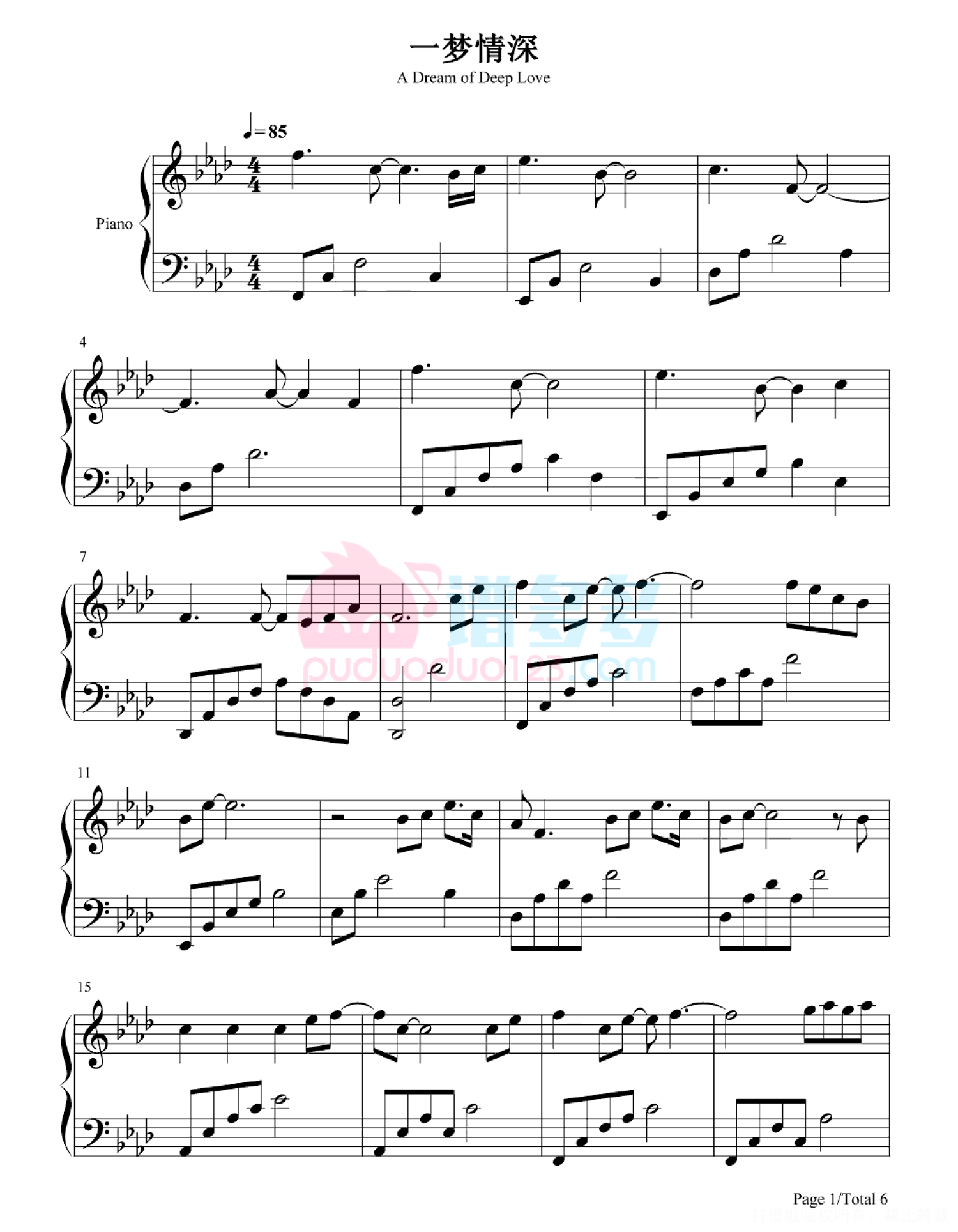 当前位置:琴谱网>钢琴谱>一梦情深