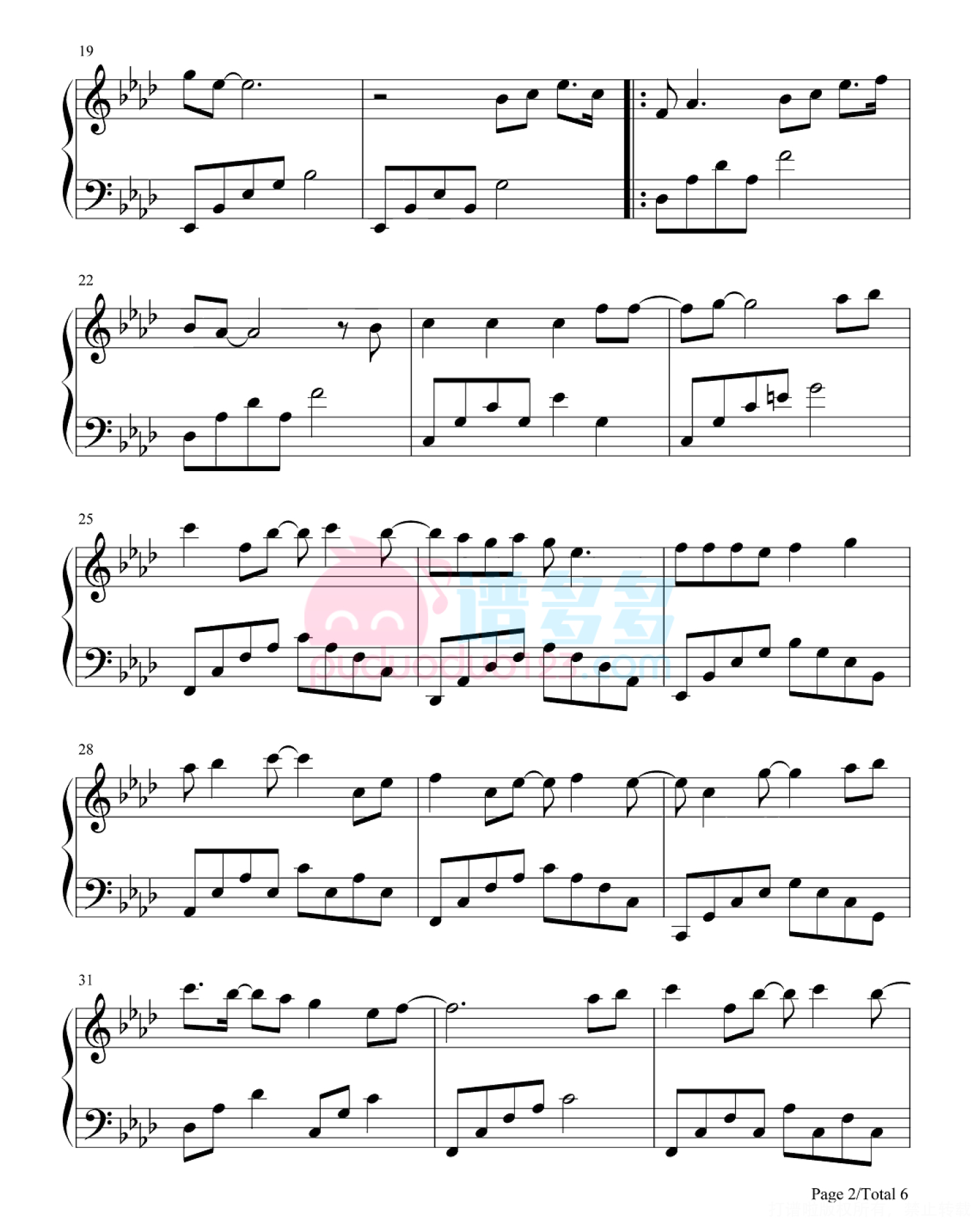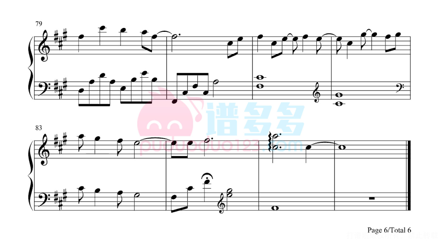 凡是琴谱网站内的版权保护水印,打印时,都会无水印。