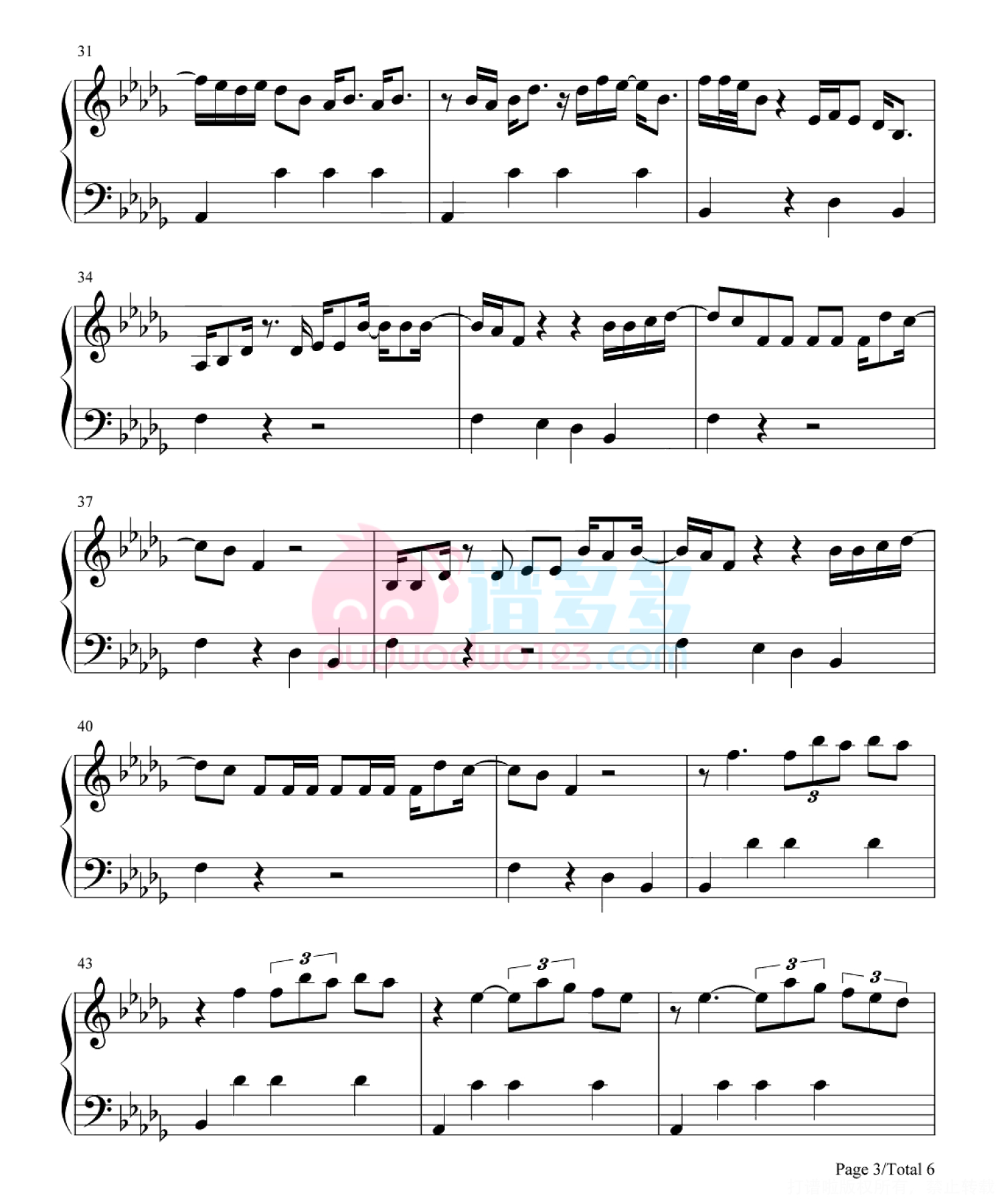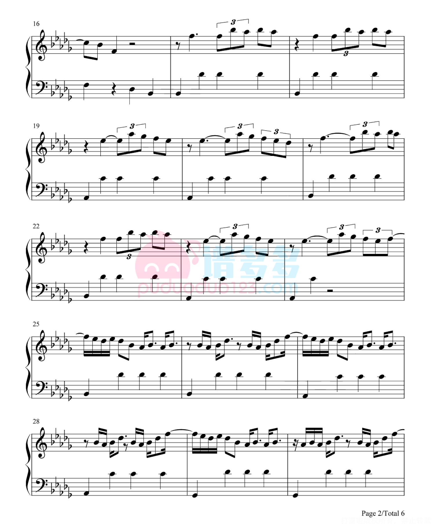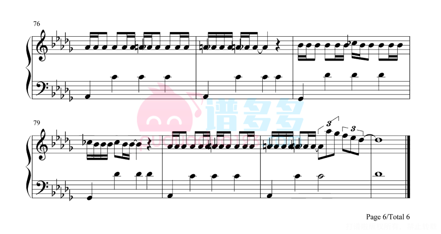 凡是琴谱网站内的版权保护水印,打印时,都会无水印。