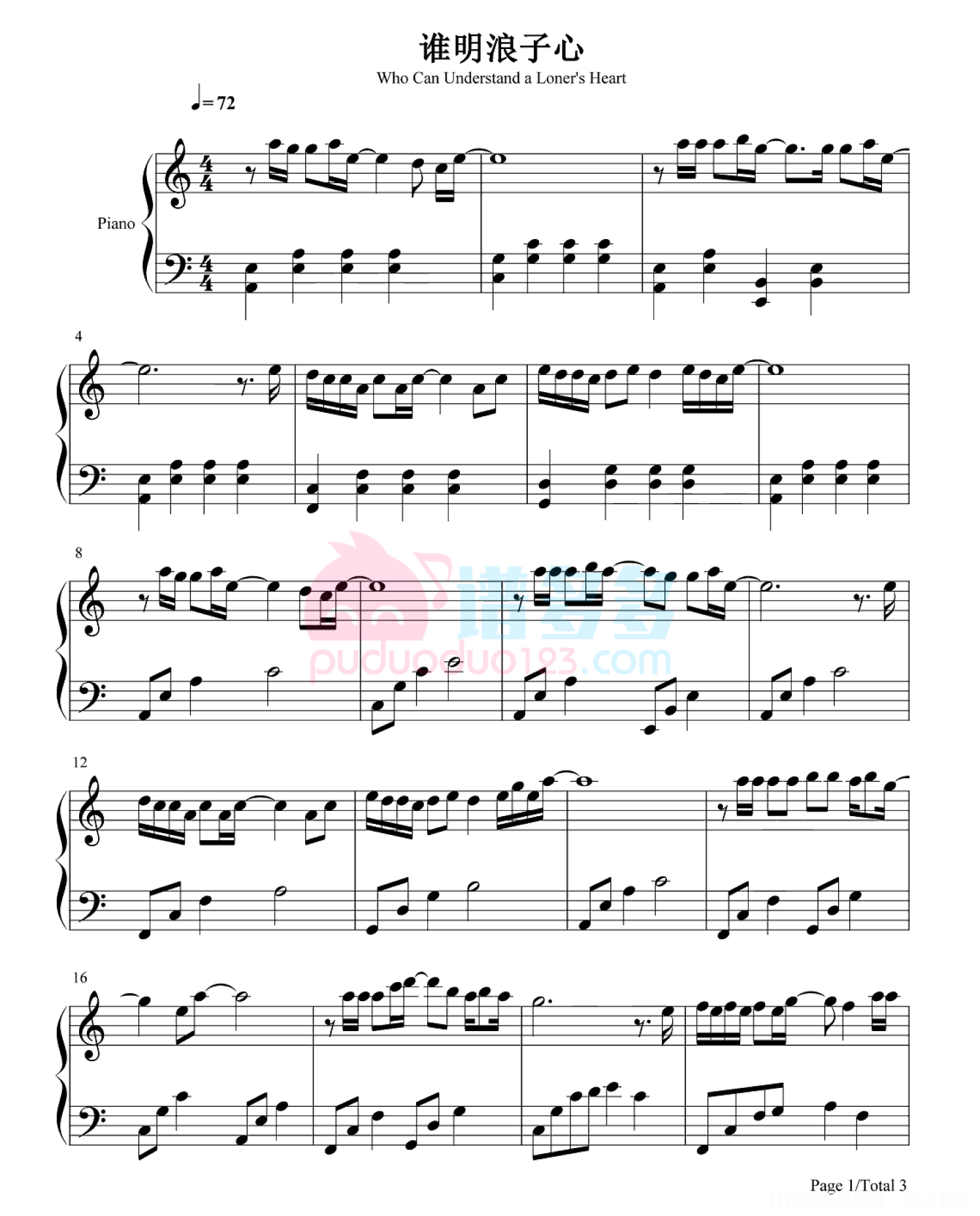 当前位置:琴谱网>钢琴谱>谁明浪子心