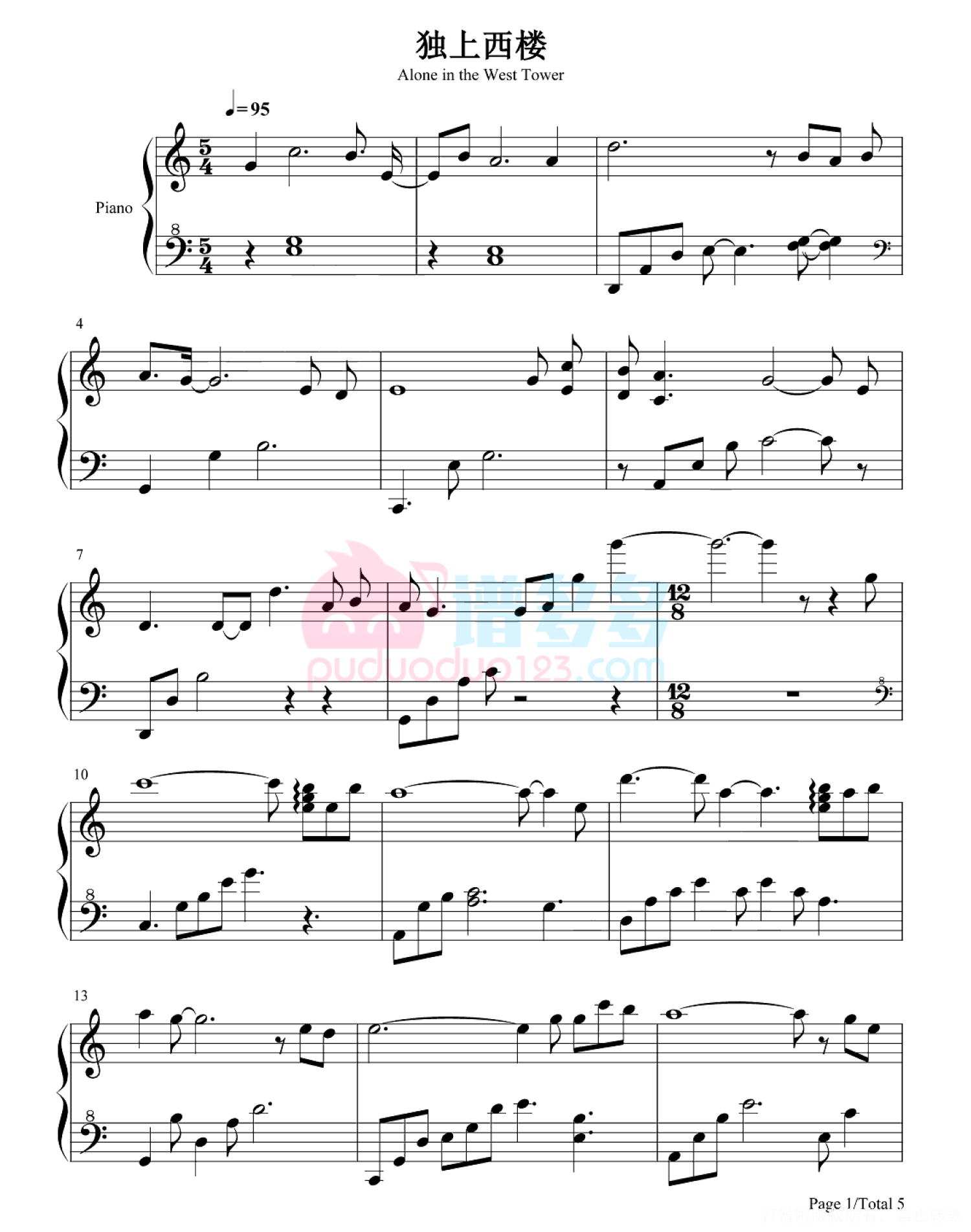 当前位置:琴谱网>钢琴谱>独上西楼