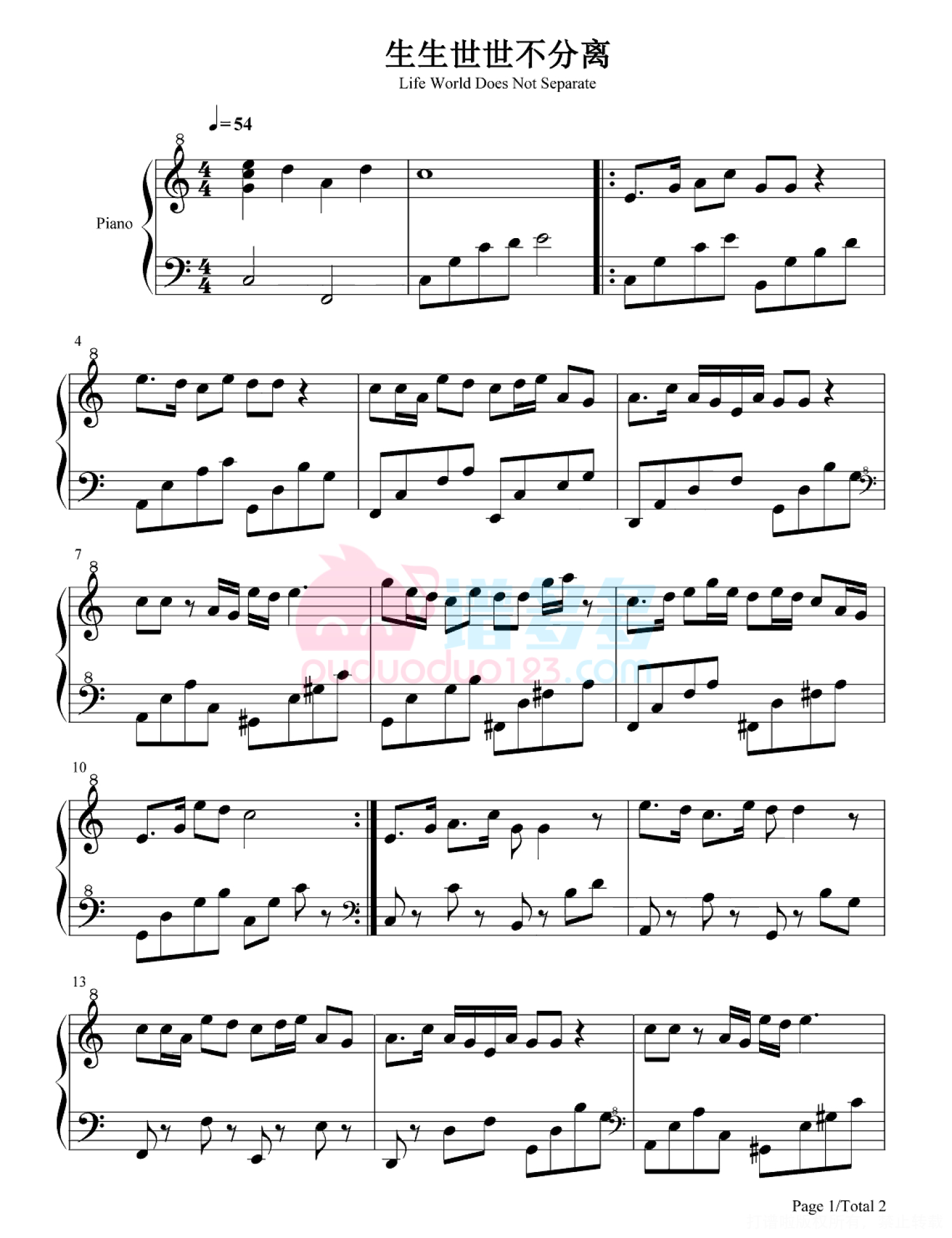 当前位置:琴谱网>钢琴谱>生生世世不分离