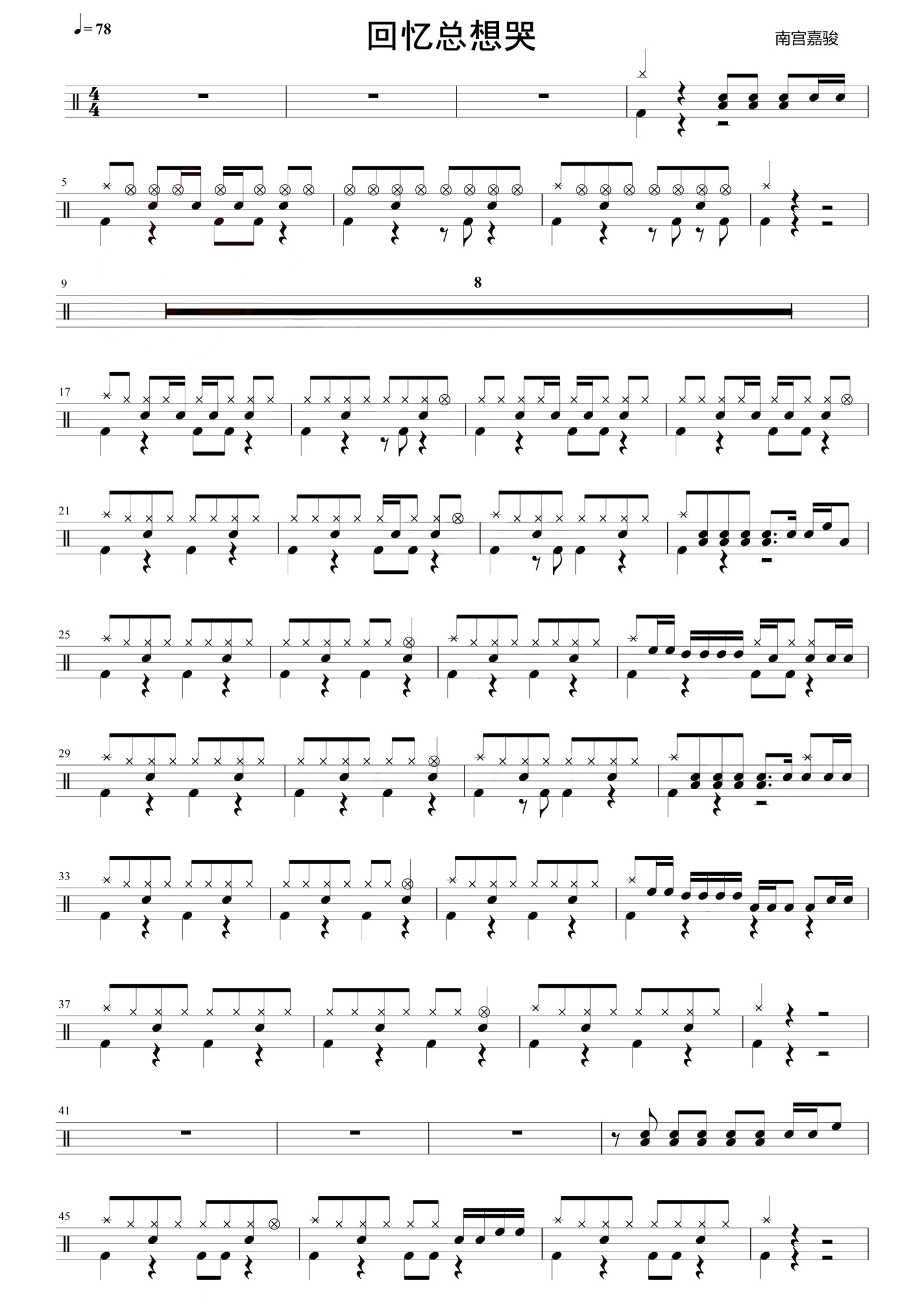 回忆总想哭鼓谱 - 南宫嘉骏 - 架子鼓谱
