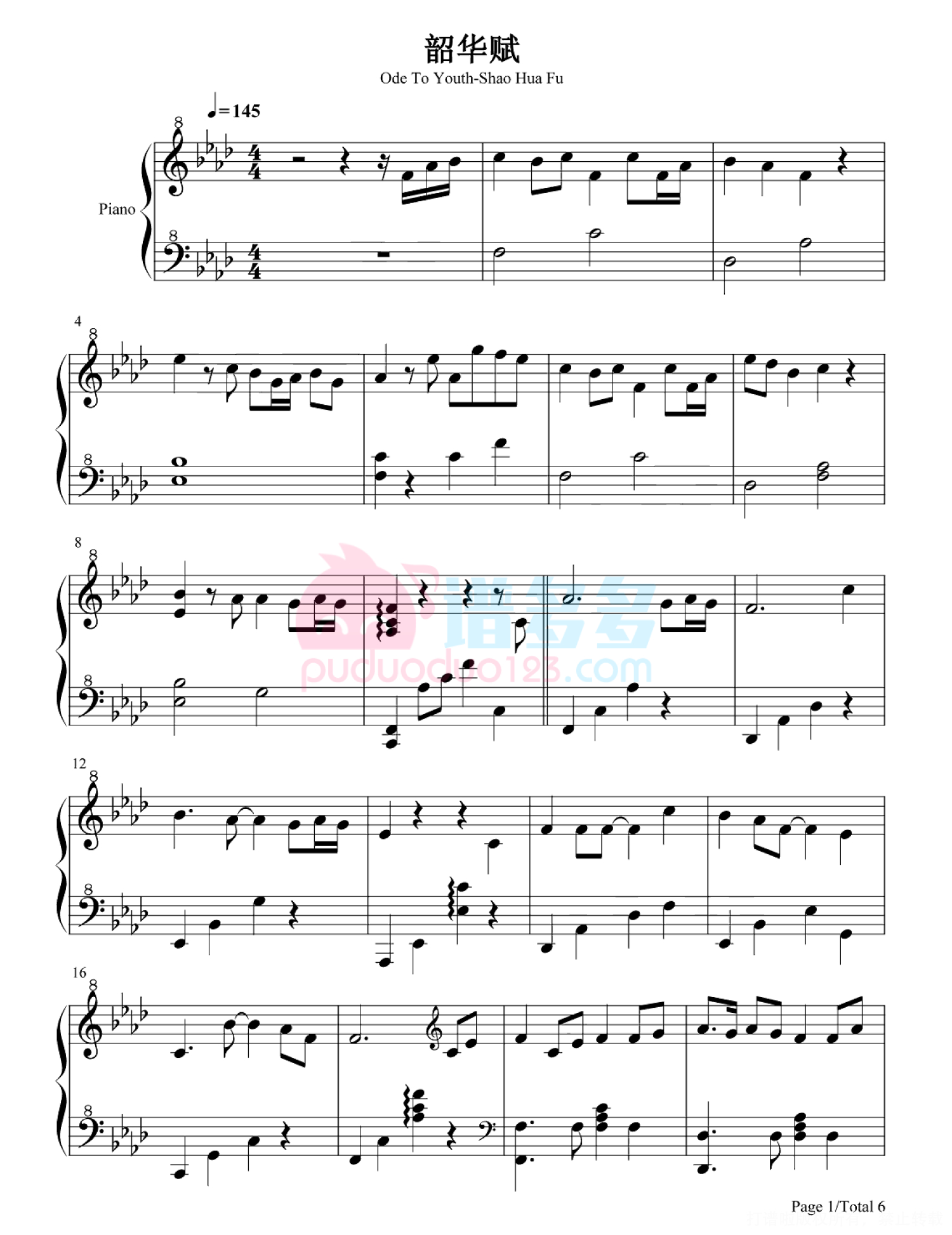 当前位置:琴谱网>钢琴谱>韶华赋