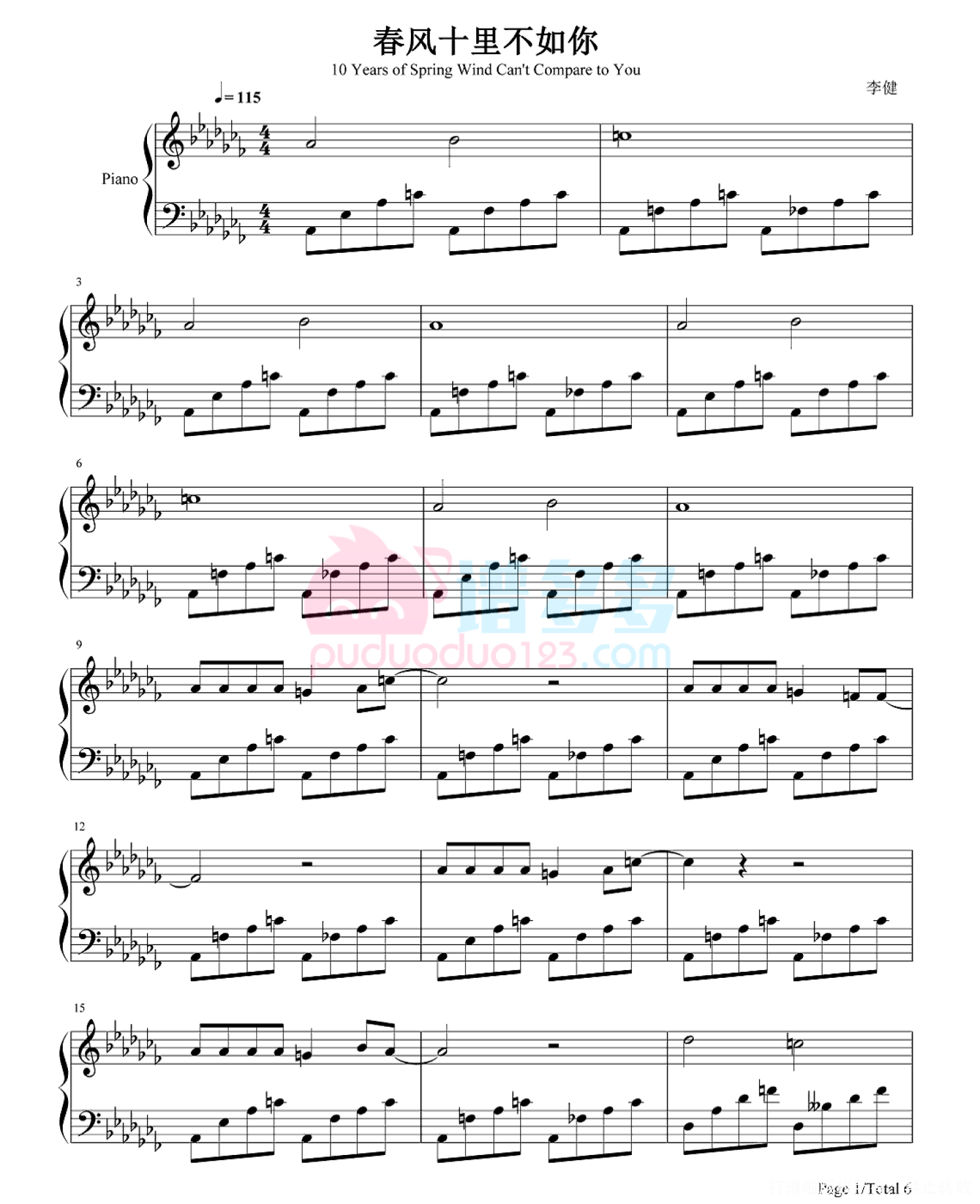 曲谱介绍: 李健《春风十里不如你》钢琴谱,由谱友精心编配制谱,完整版共6张PNG格式图片五线谱。《春风十里不如你》是电视剧《春风十里不如你》同名主题曲,由左右作词,李健作曲并演唱。打谱啦还收录了李健更多热门歌曲不同类型或格式的曲谱,欢迎您浏览及分享。 李健《春风十里不如你》钢琴五线谱1 李健《春风十里不如你》钢琴五线谱2 李健《春风十里不如你》钢琴五线谱3 李健《春风十里不如你》钢琴五线谱4 李健《春风十里不如你》钢琴五线谱5 李健《春风十里不如你》钢琴五线谱6 《春风十里不如你》不仅延续了李健一贯的音乐风格,以清新浪漫的形式将冯唐原著中青春里的躁动、悸动、心动一展无遗,更是李健与《传奇》的作词者左右的再度合作。