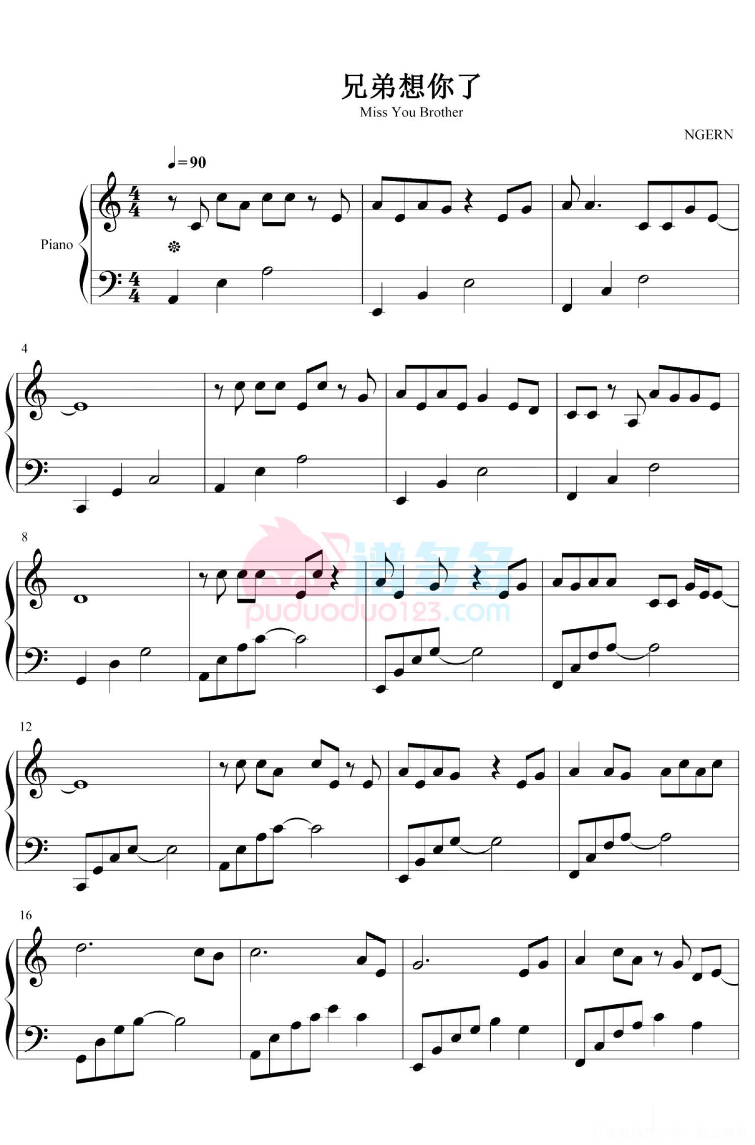 当前位置:琴谱网>钢琴谱>兄弟想你了