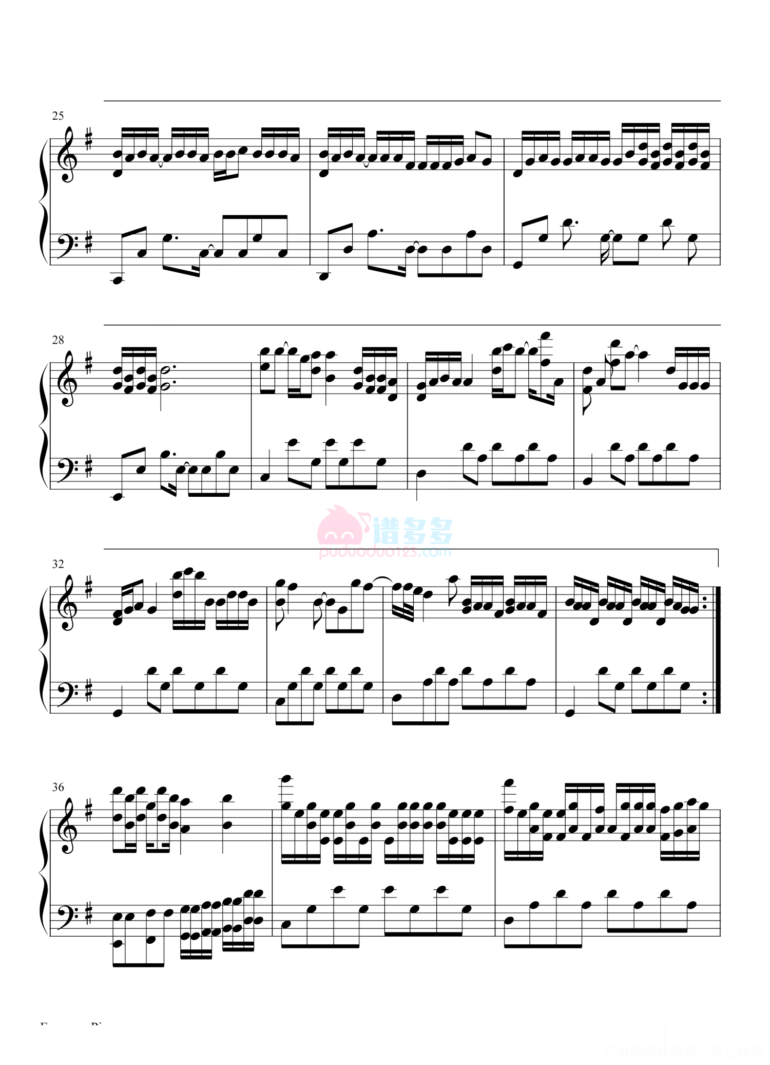 凡是琴谱网站内的版权保护水印,打印时,都会无水印。