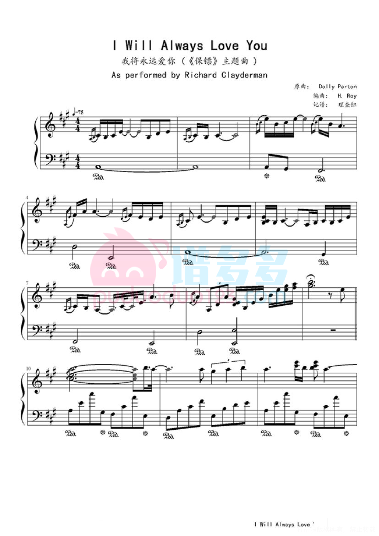 当前位置:琴谱网>钢琴谱>I will always love you