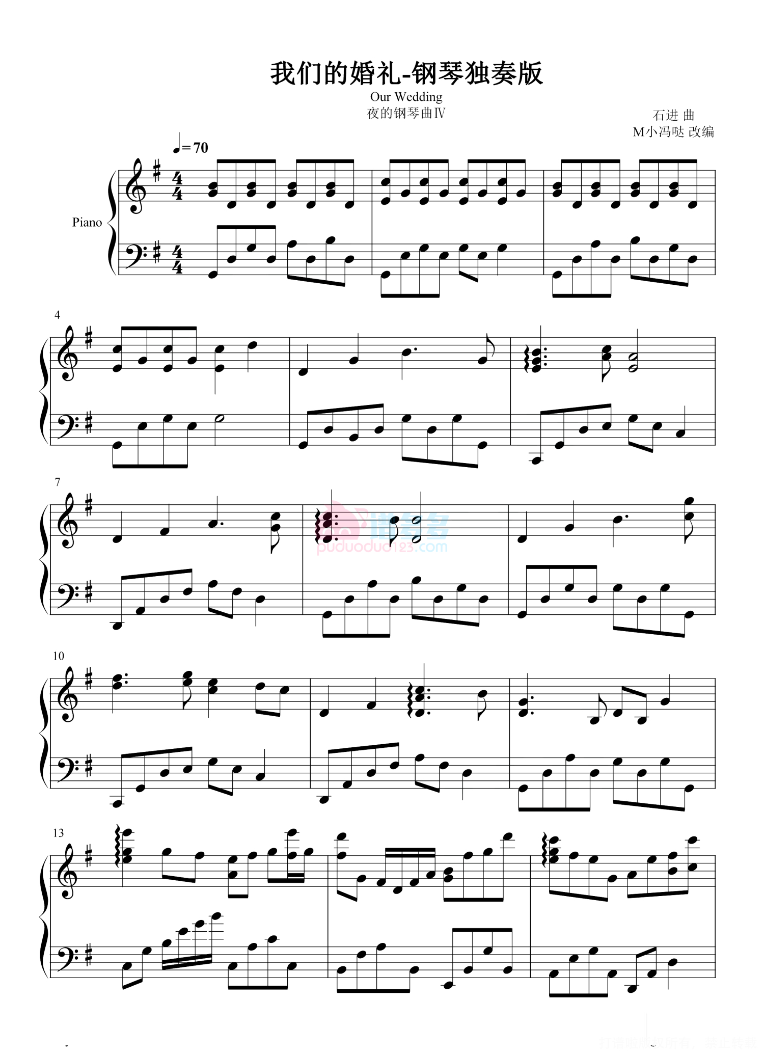 我们的婚礼-夜的钢琴曲Ⅳ钢琴谱 - 石进