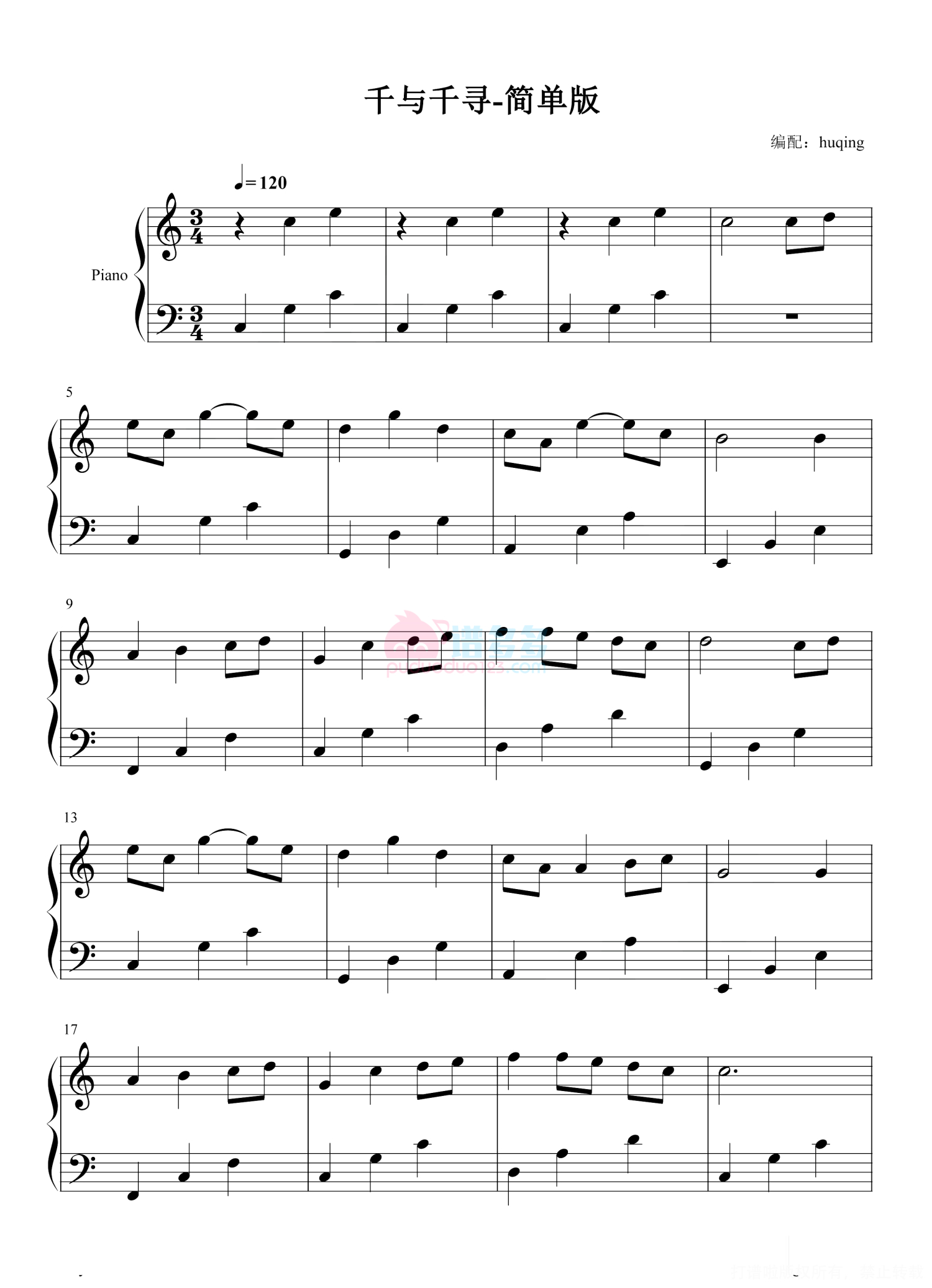 千与千寻钢琴谱 - 久石让