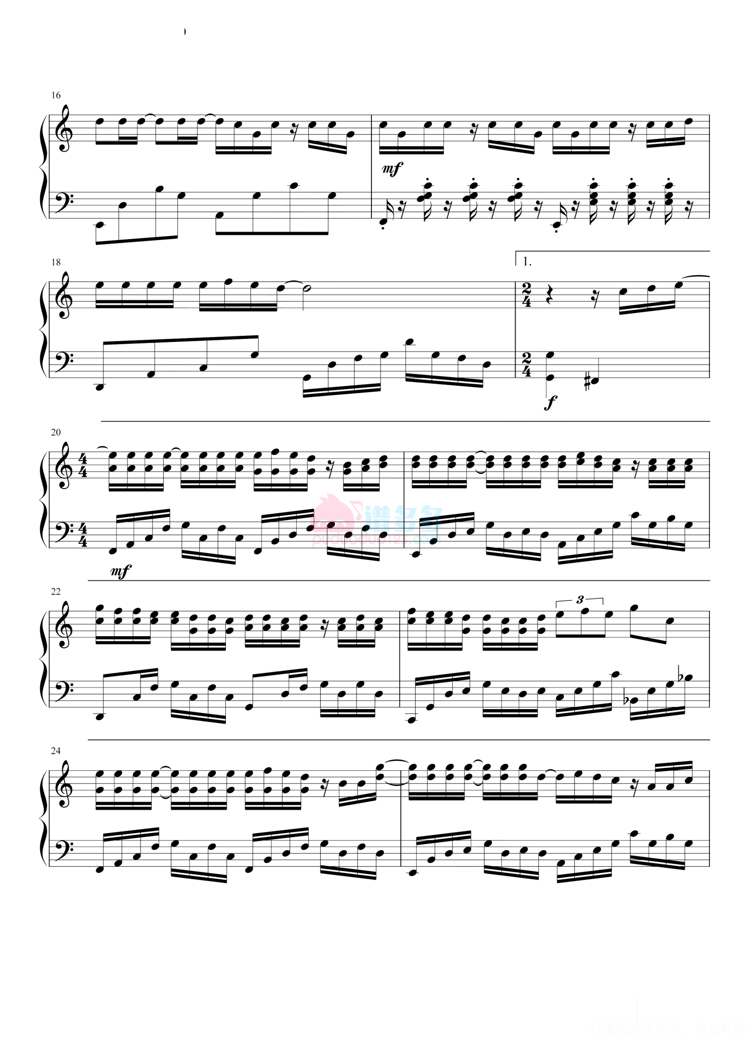琴谱网尊重作者版权,不会私自去掉作者提供的水印,此类图谱如需去掉水印,请自行去除后,通过站内自助上传打印即可。