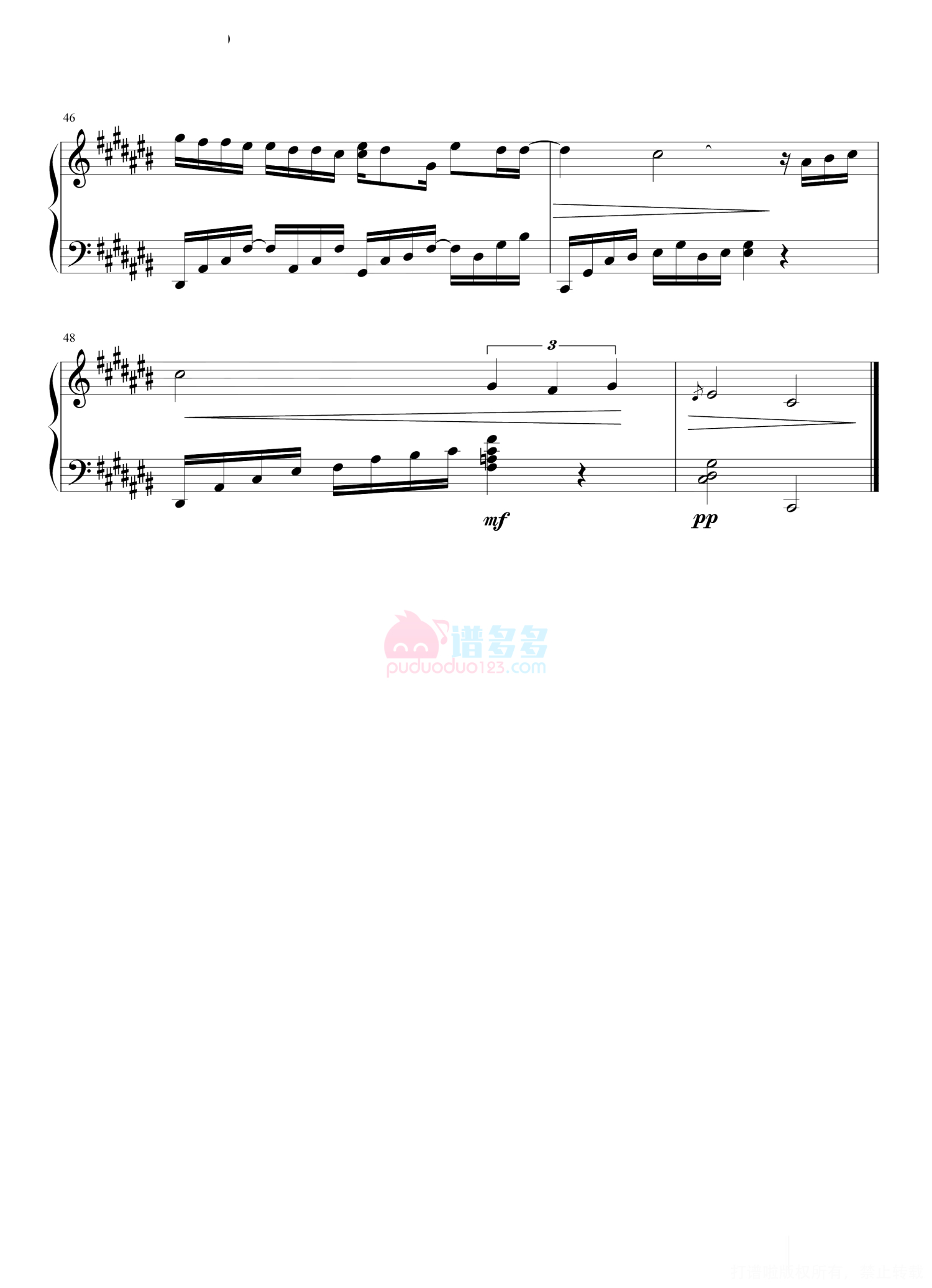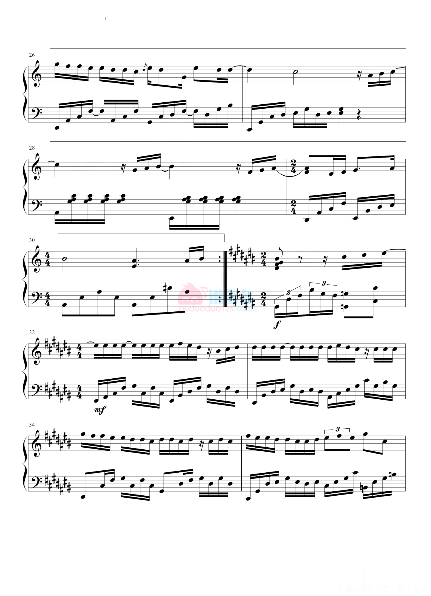 凡是琴谱网站内的版权保护水印,打印时,都会无水印。