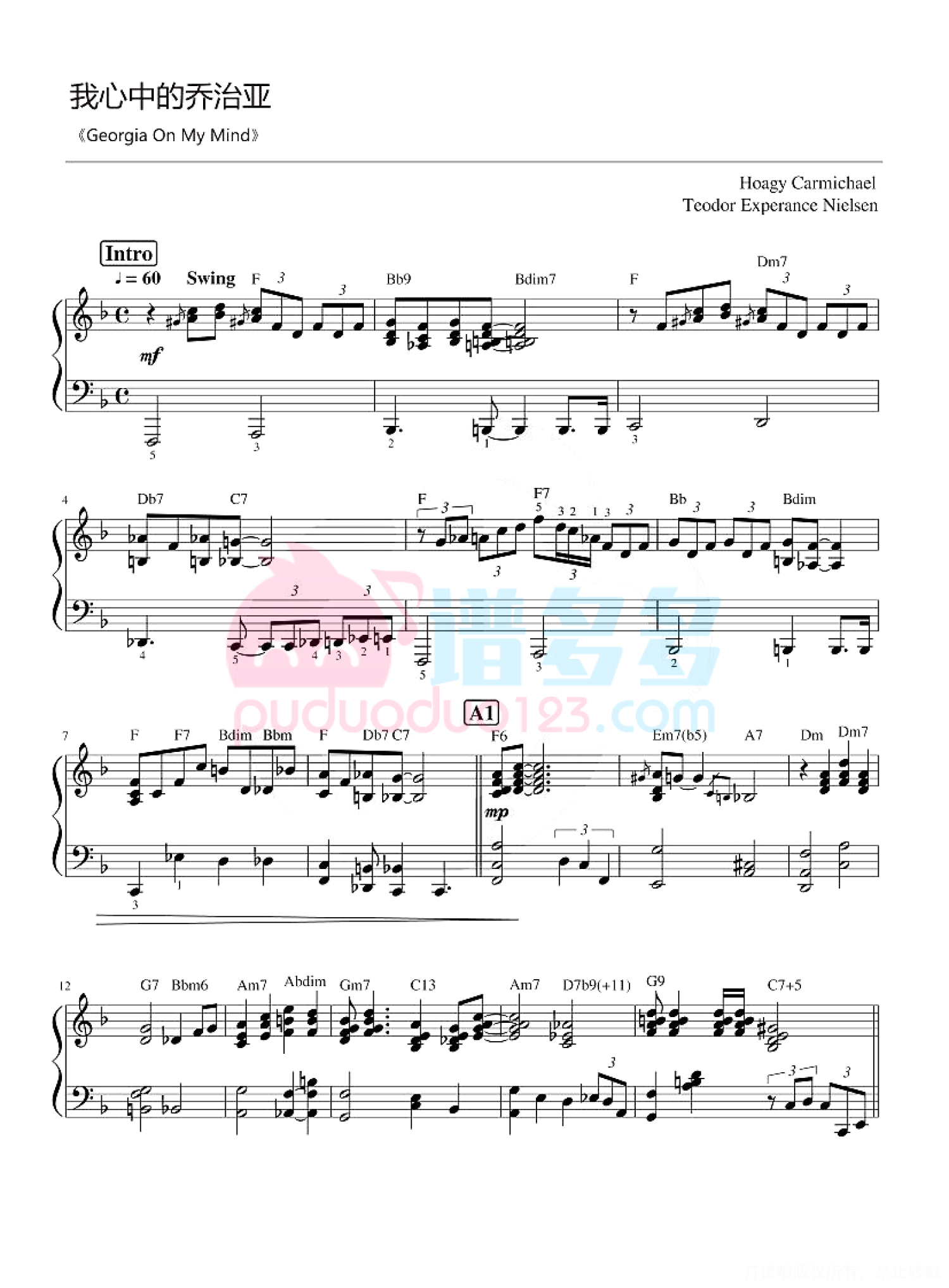 我心中的乔治亚钢琴谱 - Hoagy Carmichael