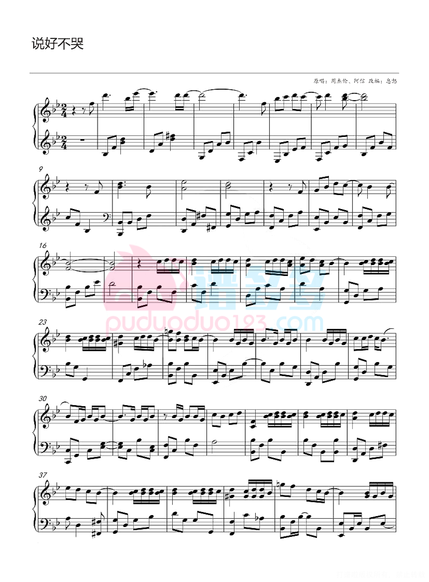 说好不哭钢琴谱 - 周杰伦/阿信