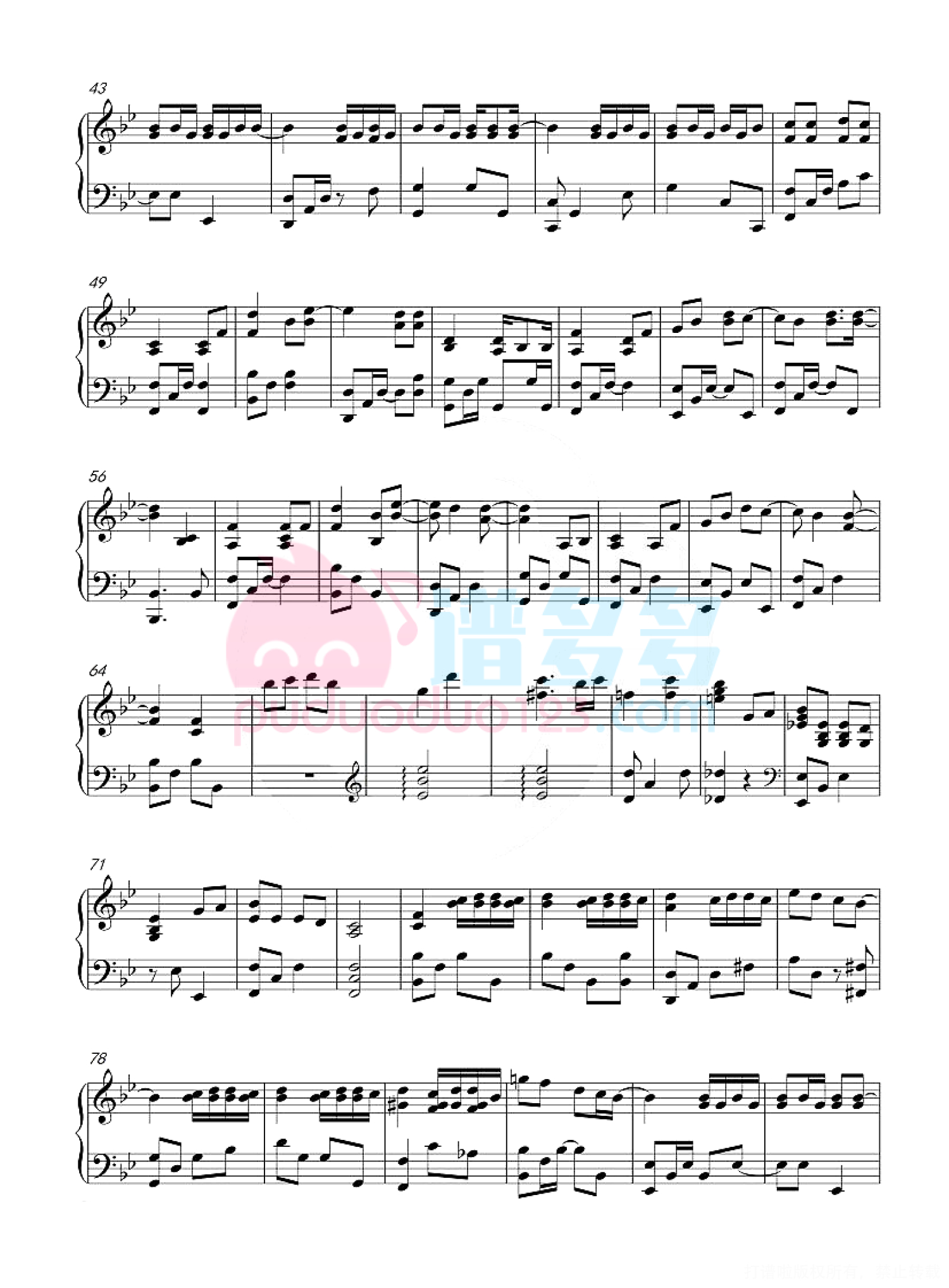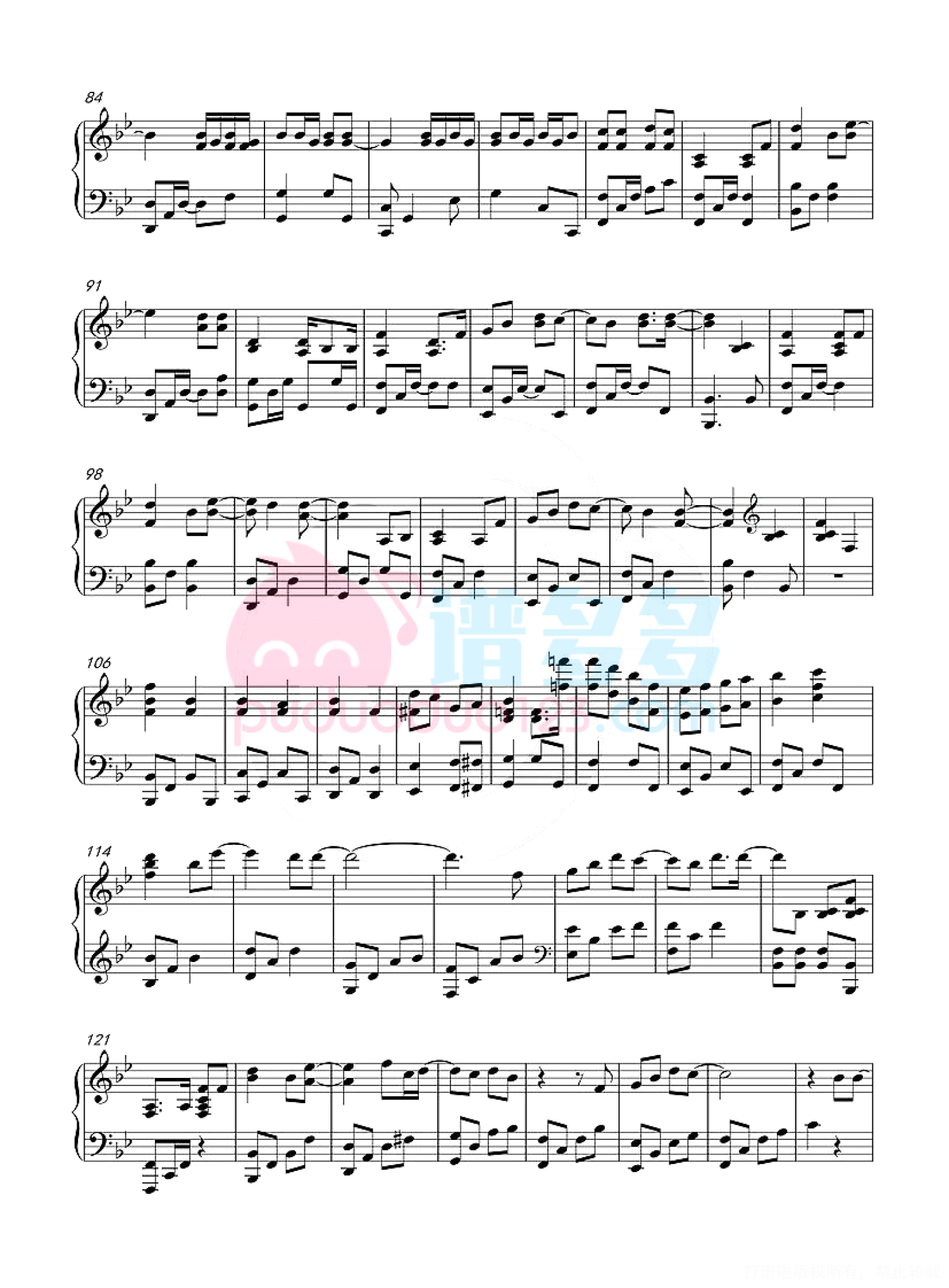 凡是琴谱网站内的版权保护水印,打印时,都会无水印。