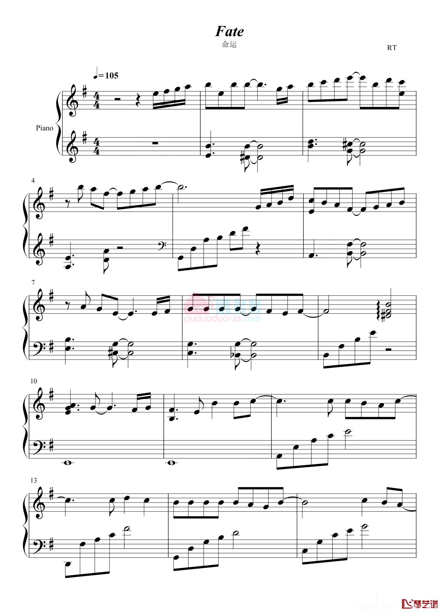 曲谱介绍: Rain《Fate》钢琴谱,共有4张高清图谱。