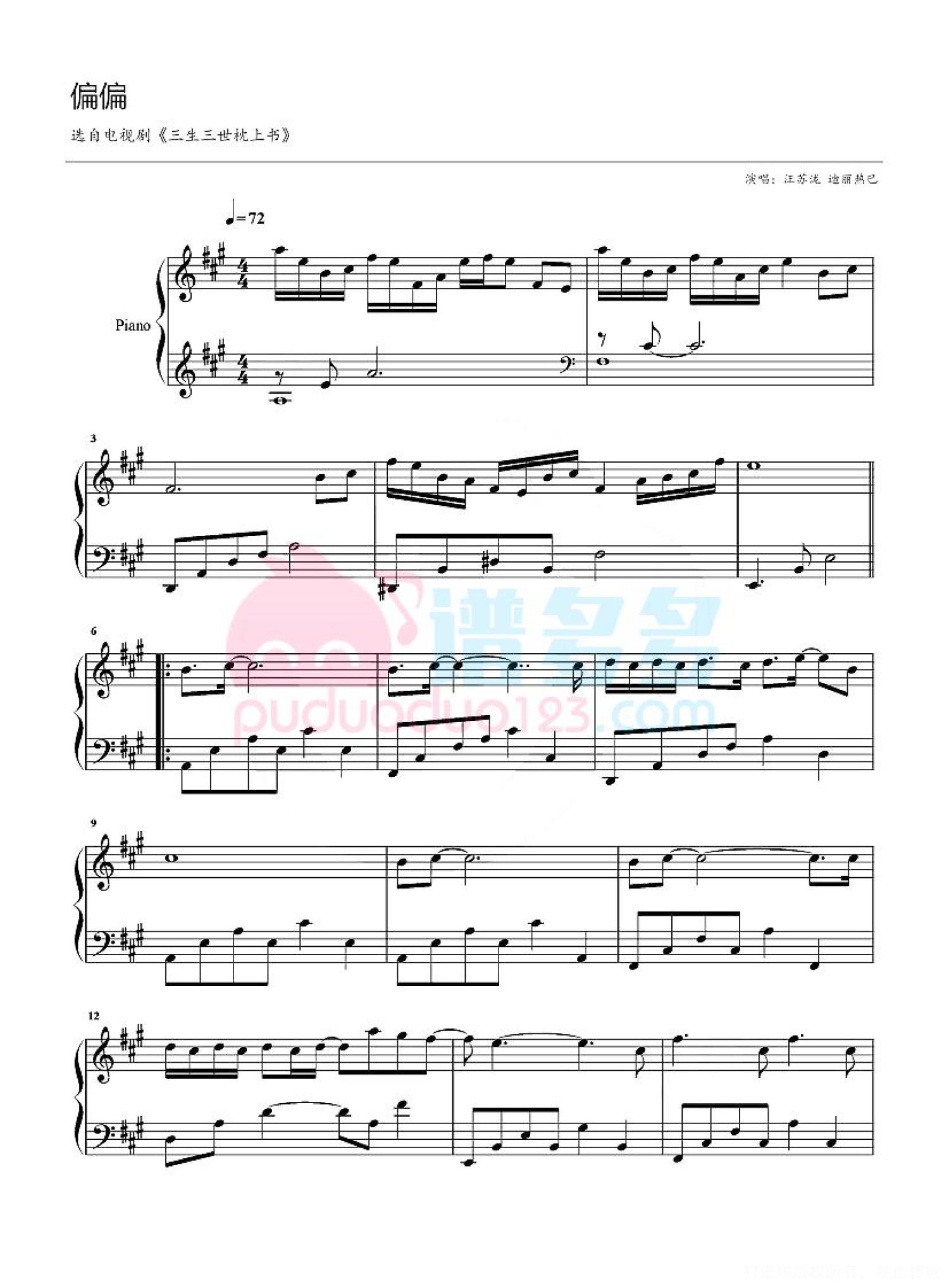 偏偏钢琴谱 - 汪苏泷/迪丽热巴