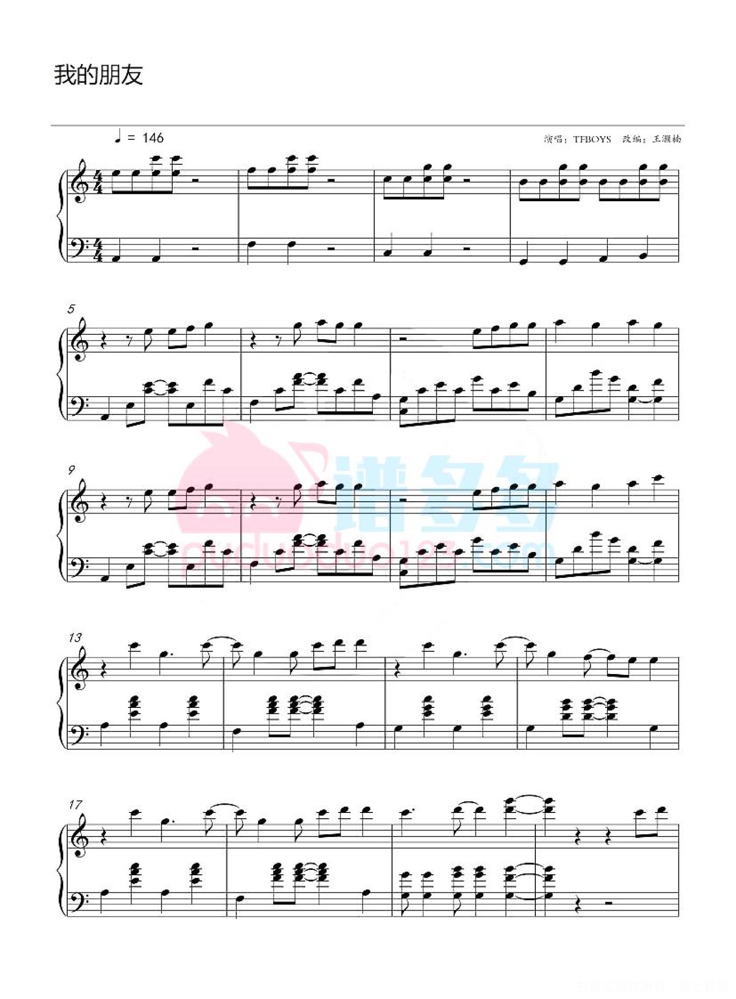 我的朋友钢琴谱 - TFBOYS