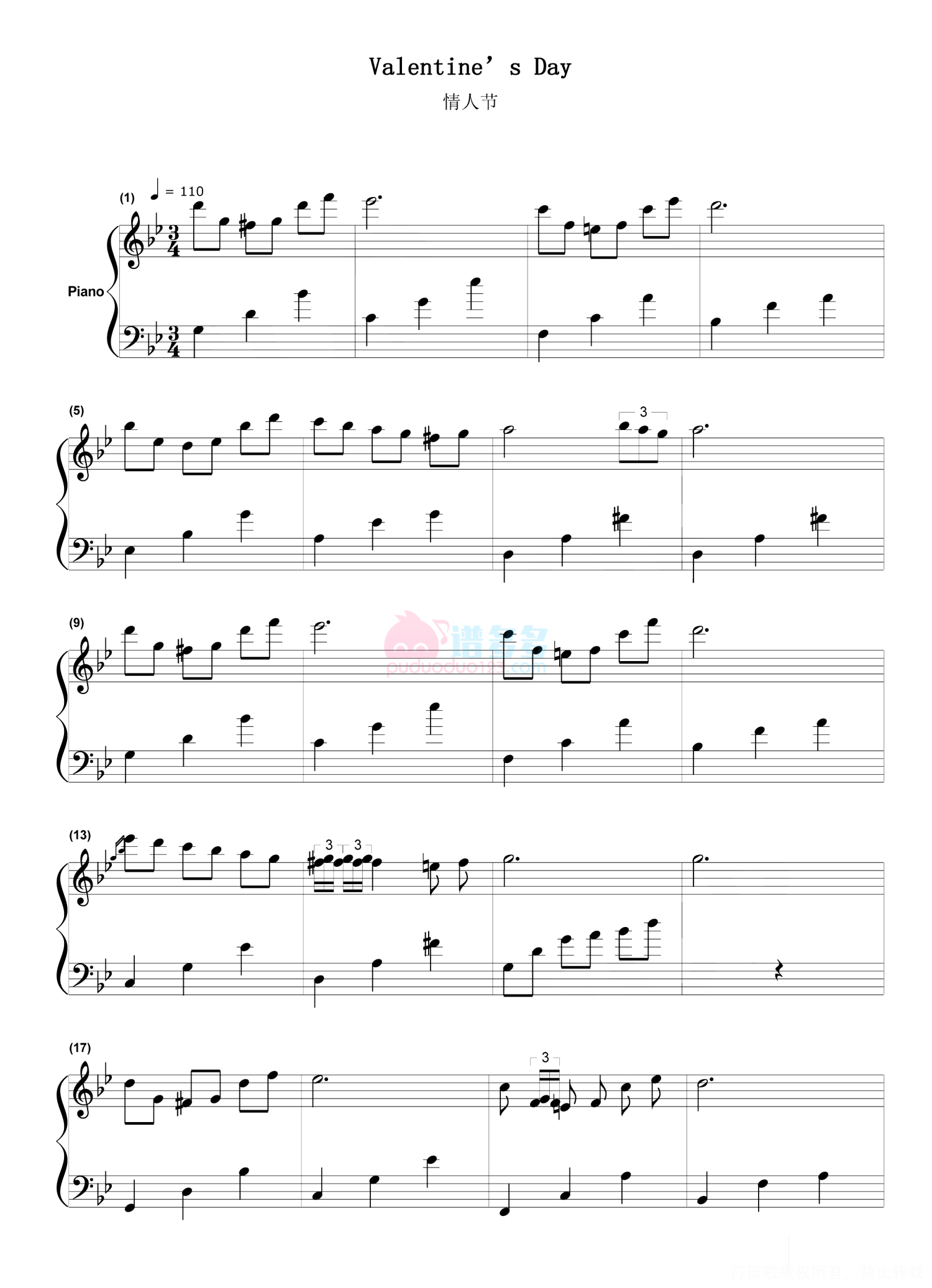 当前位置:琴谱网>钢琴谱>Valentine’s Day-情人节