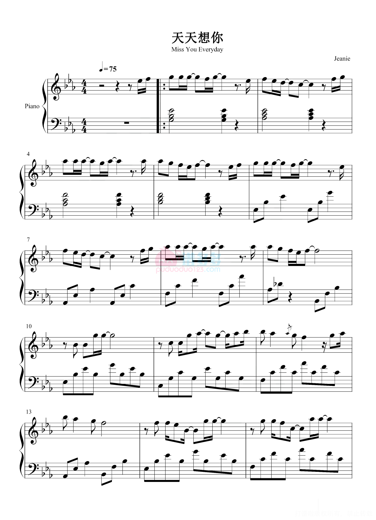 当前位置:琴谱网>钢琴谱>天天想你