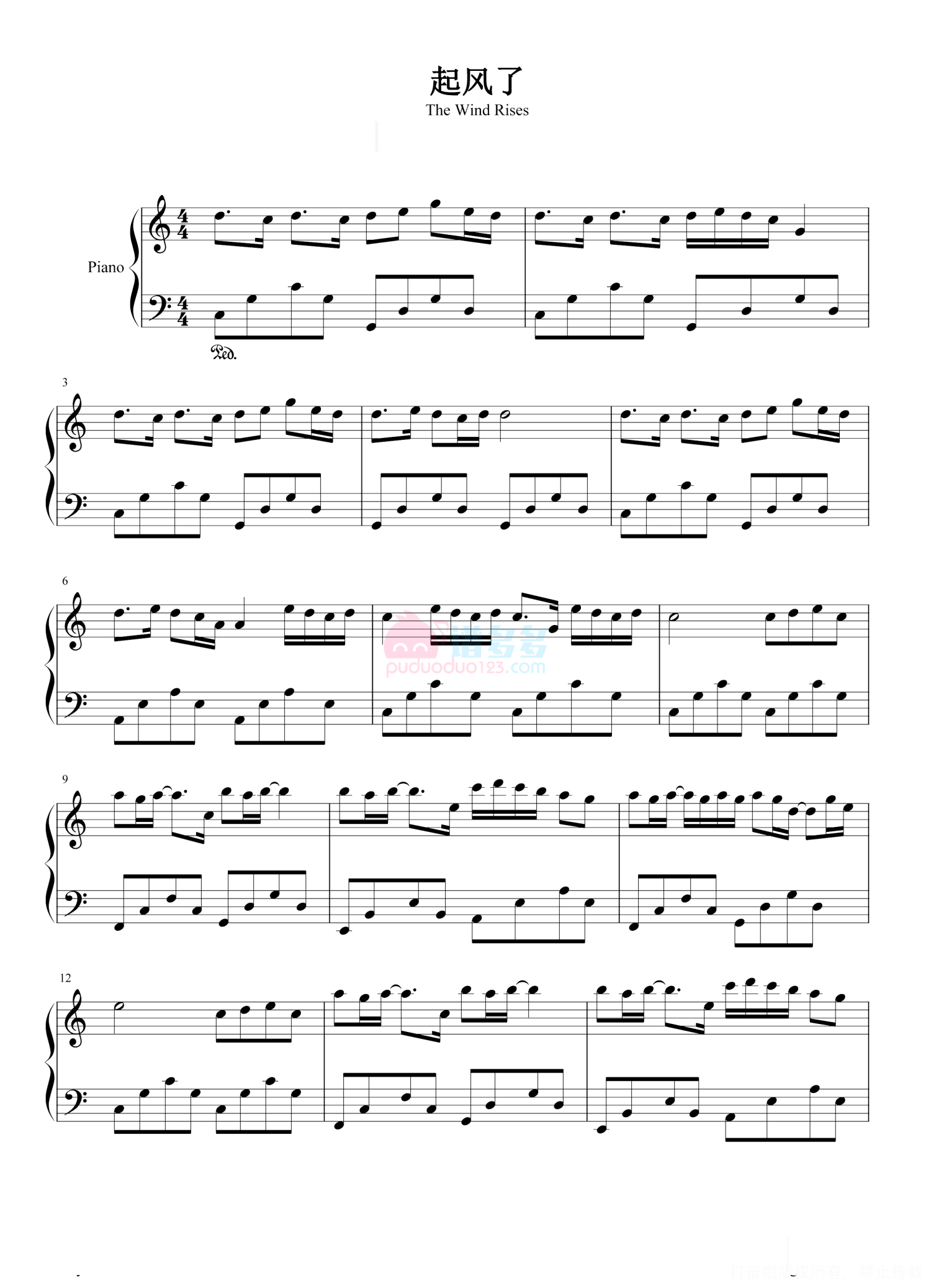 起风了钢琴谱 - 买辣椒也用券