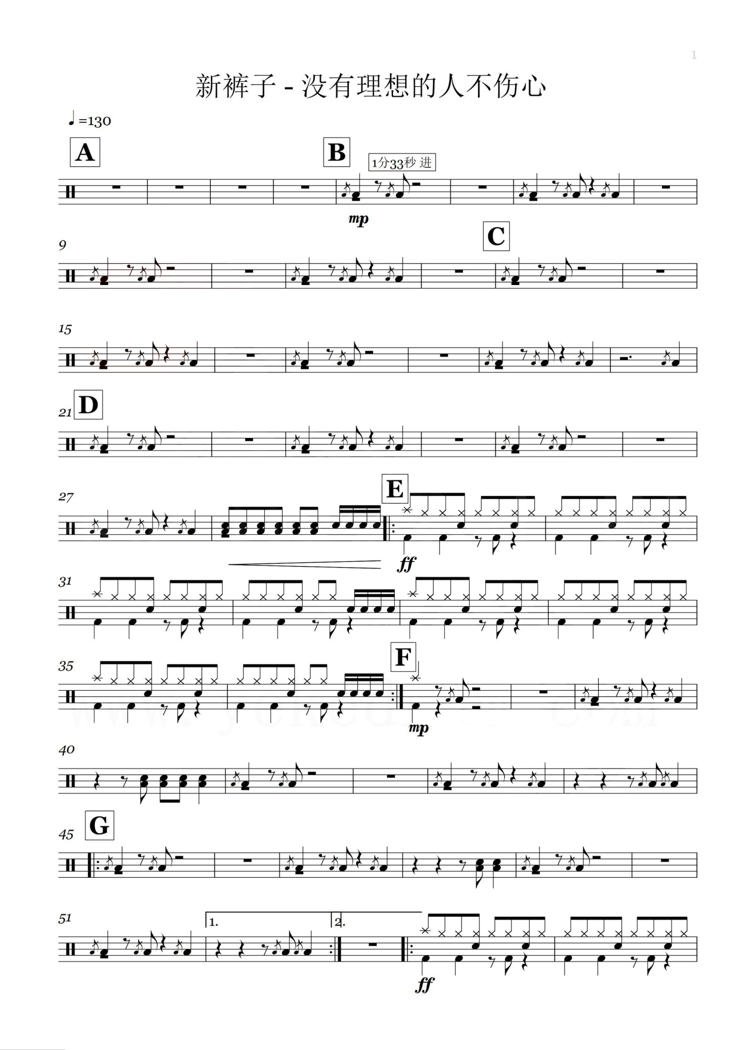 • 没有理想的人不伤心鼓谱 - 新裤子乐队 - 架子鼓谱第1张