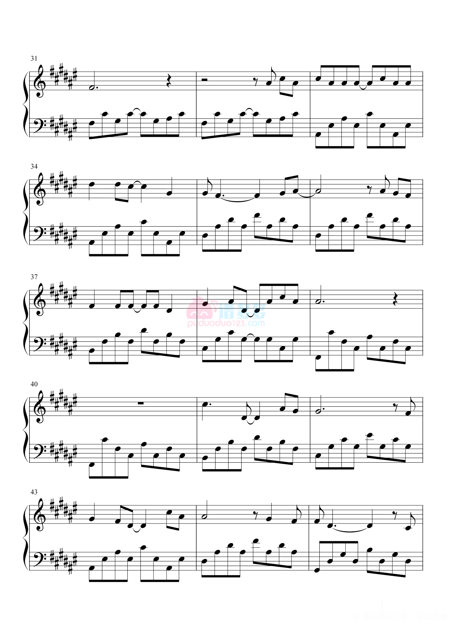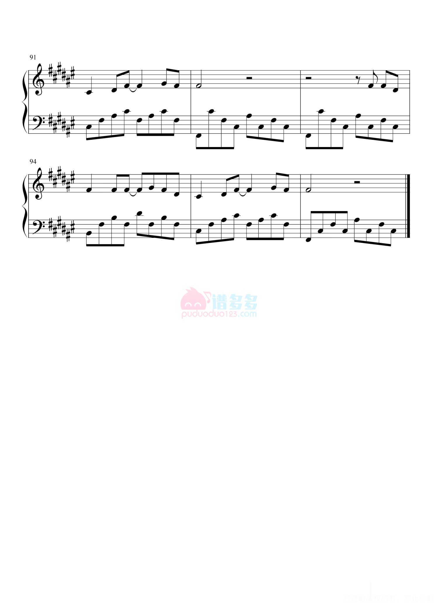 凡是琴谱网站内的版权保护水印,打印时,都会无水印。