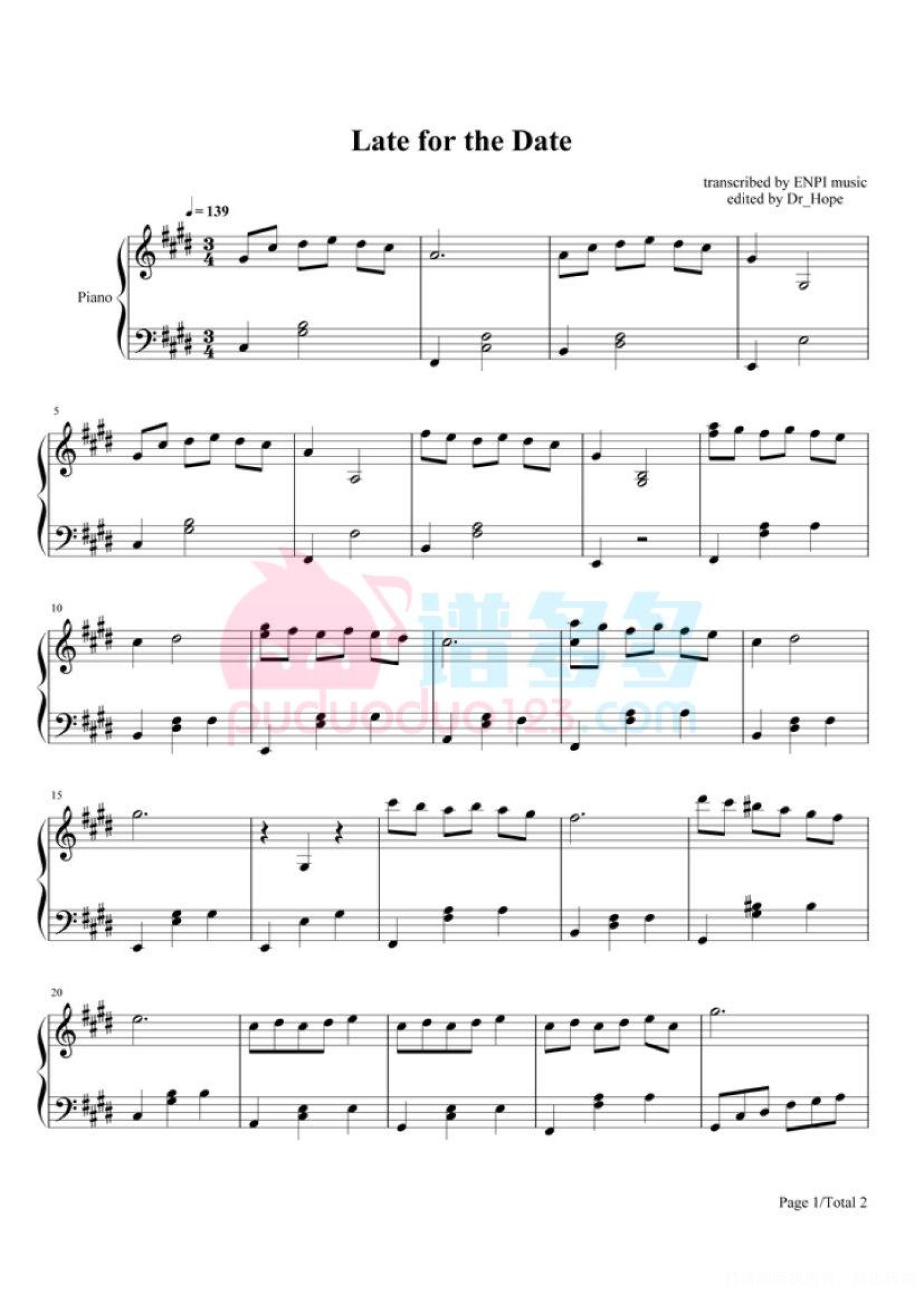 当前位置:琴谱网>钢琴谱>Late For The Date