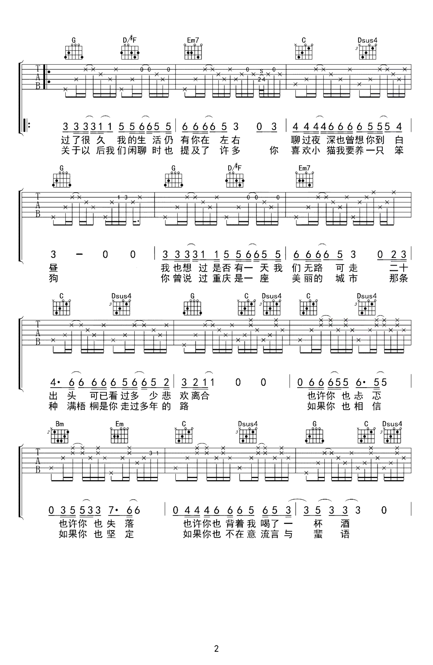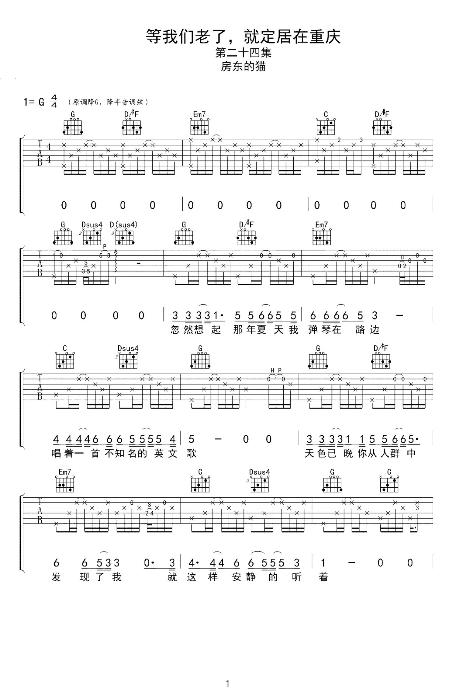 等我们老了,就定居在重庆吉他谱 - 房东的猫 - G调吉他弹唱谱