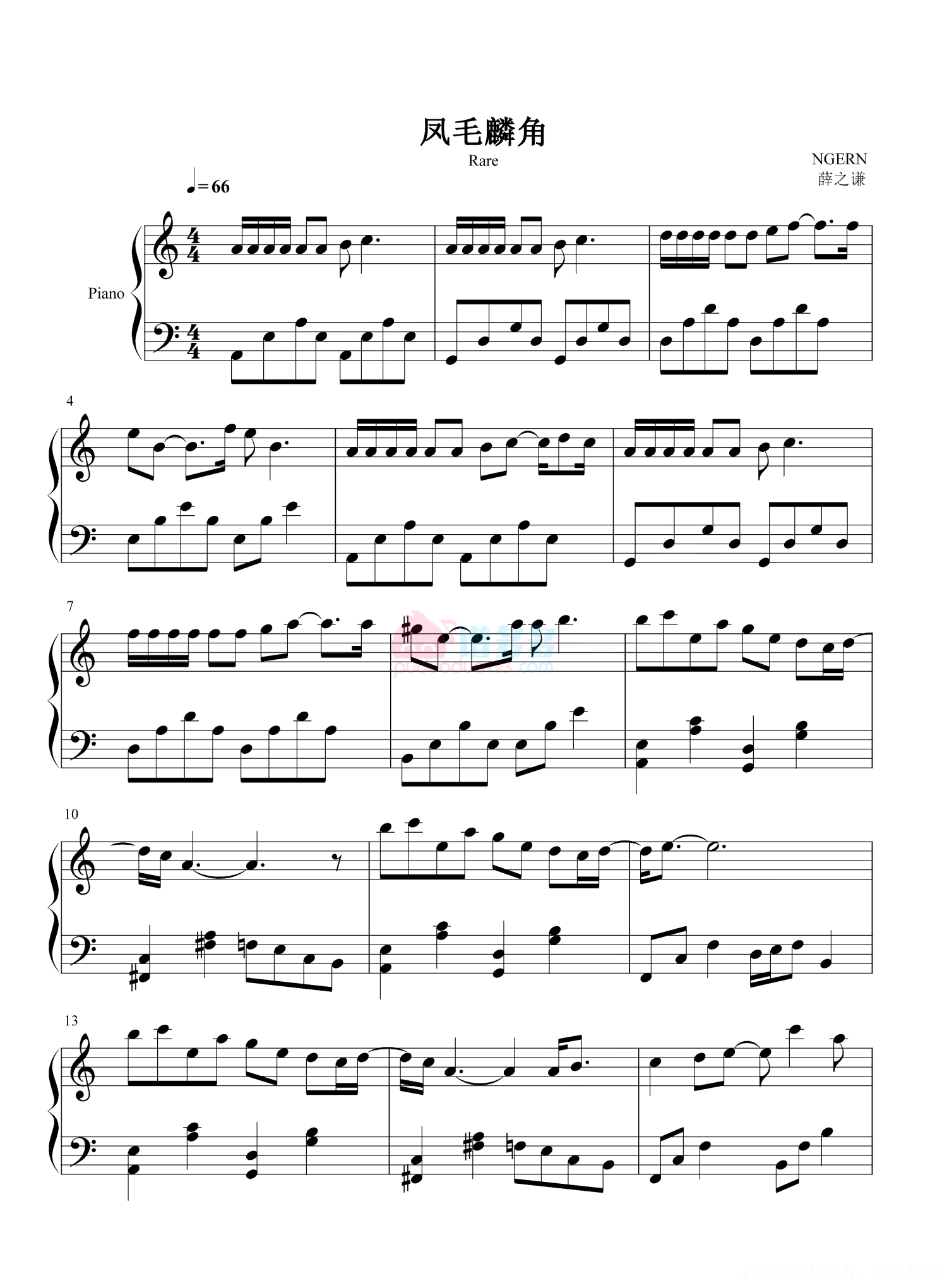 凤毛麟角钢琴谱 - 薛之谦