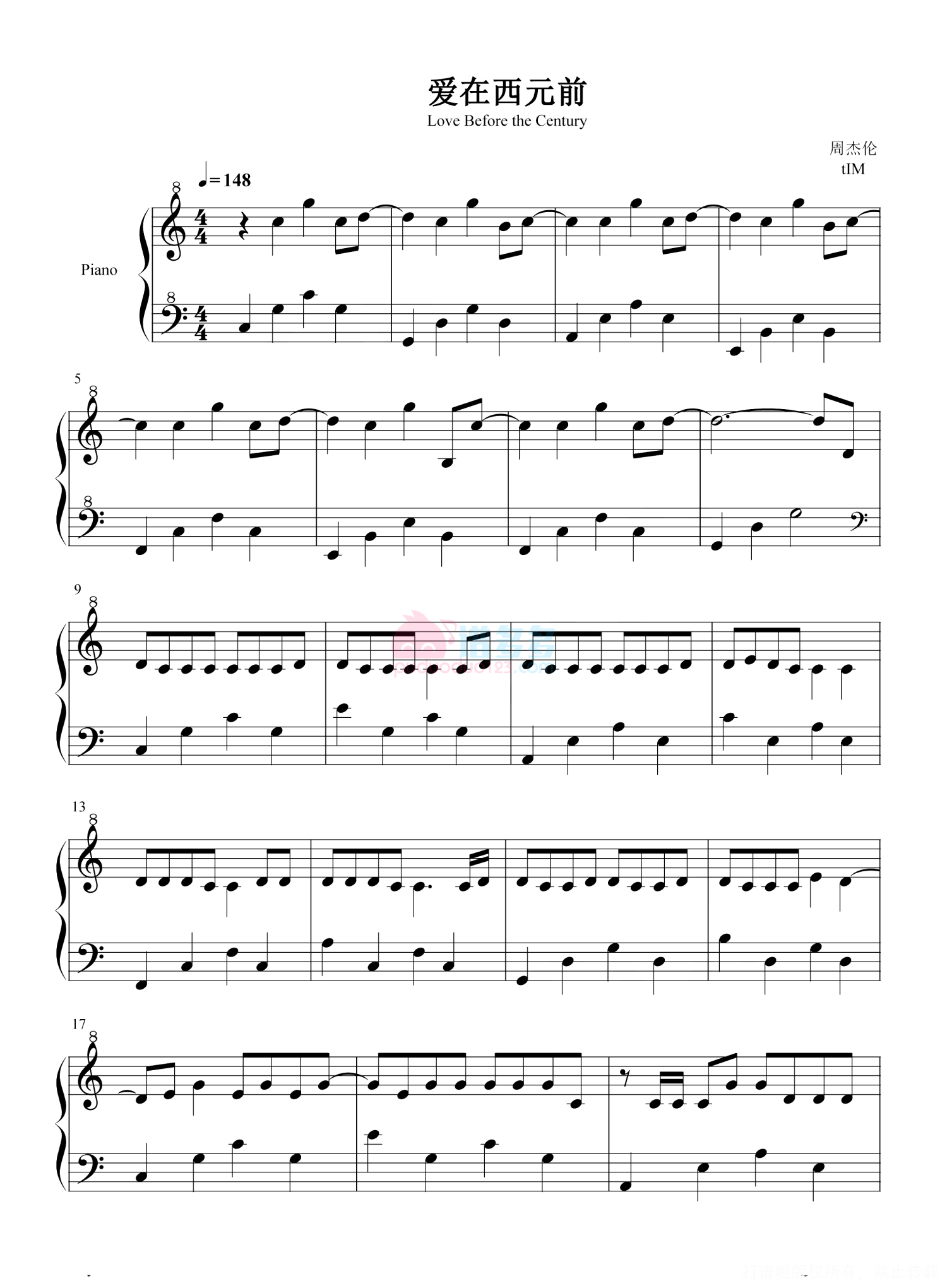 爱在西元前钢琴谱 - 周杰伦