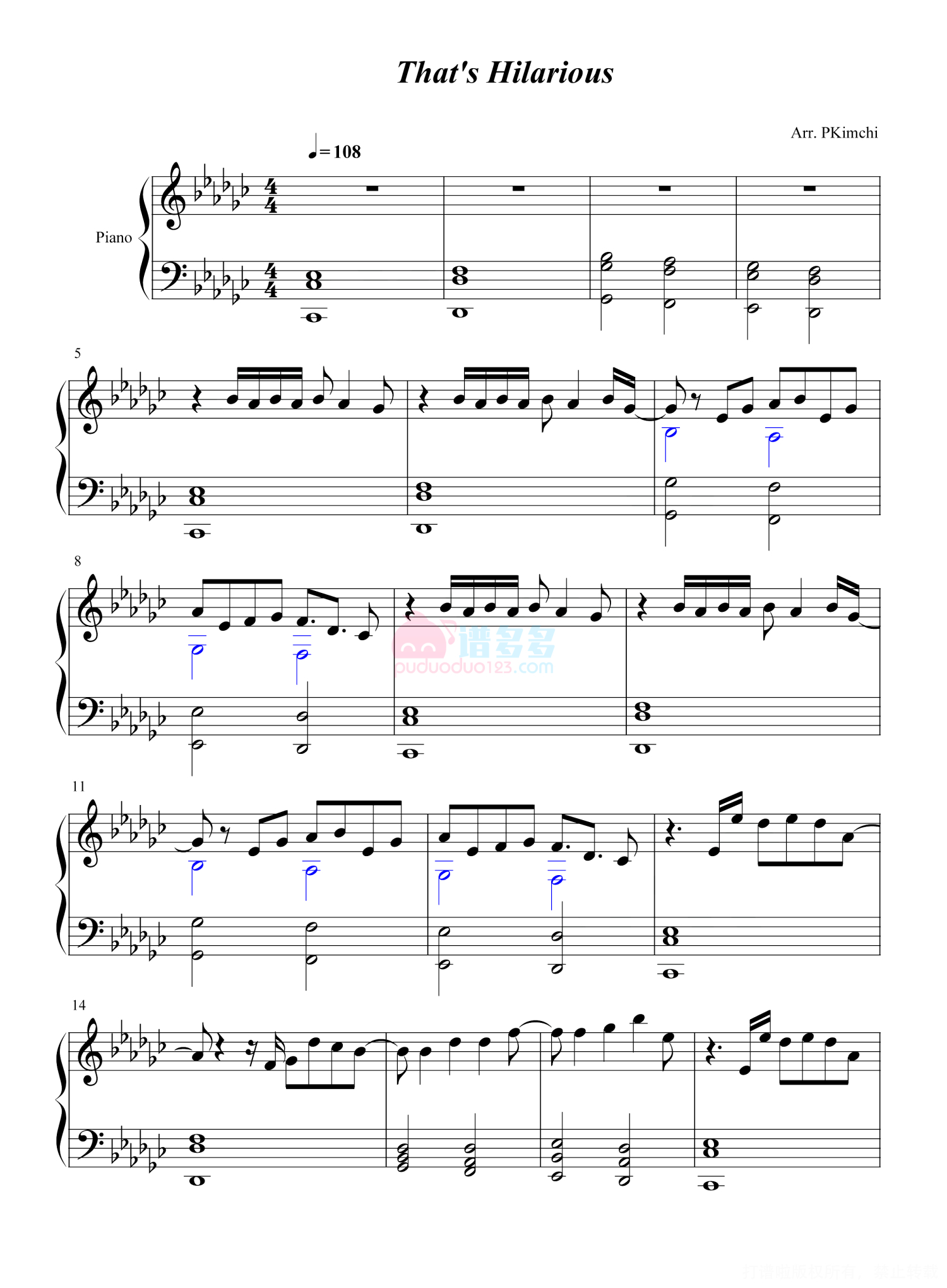 当前位置:琴谱网>钢琴谱>Thats Hilarious